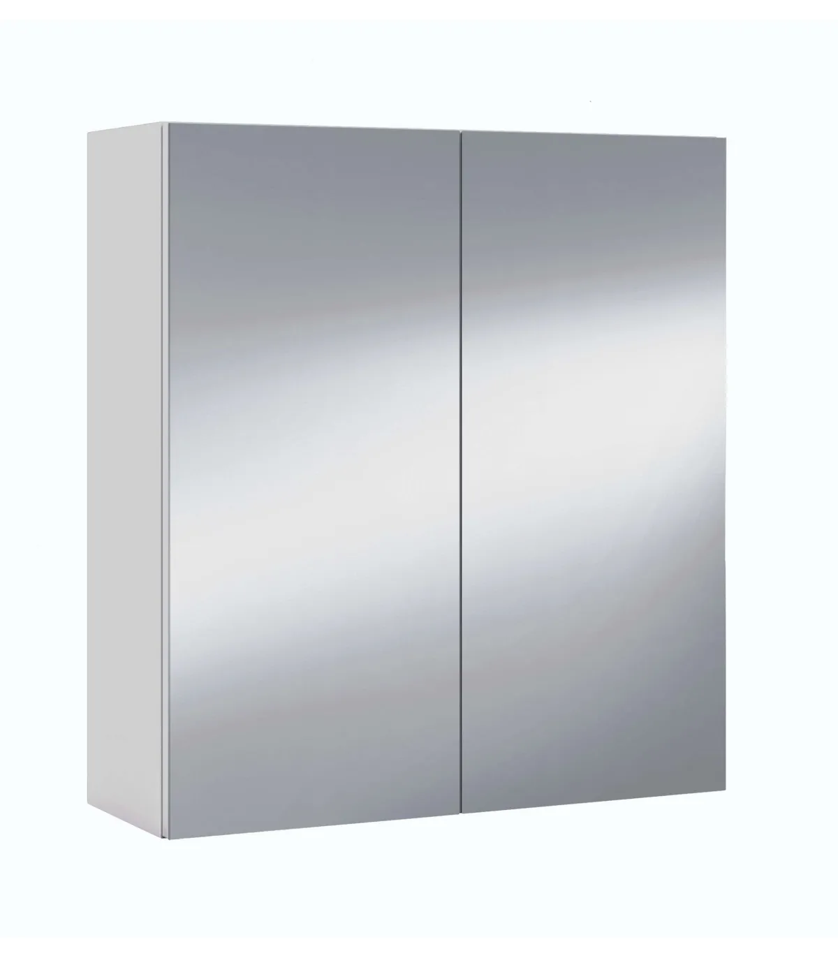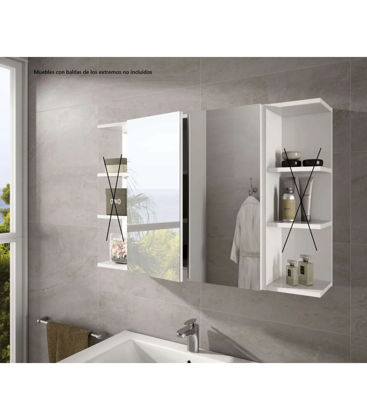 Perfect Camerino Furniture for your bathroom with a simple but very functional style in bright white with two swinging doors with mirrors. It has 2 interior shelves. This furniture is made of high quality melamine sung in PVC..