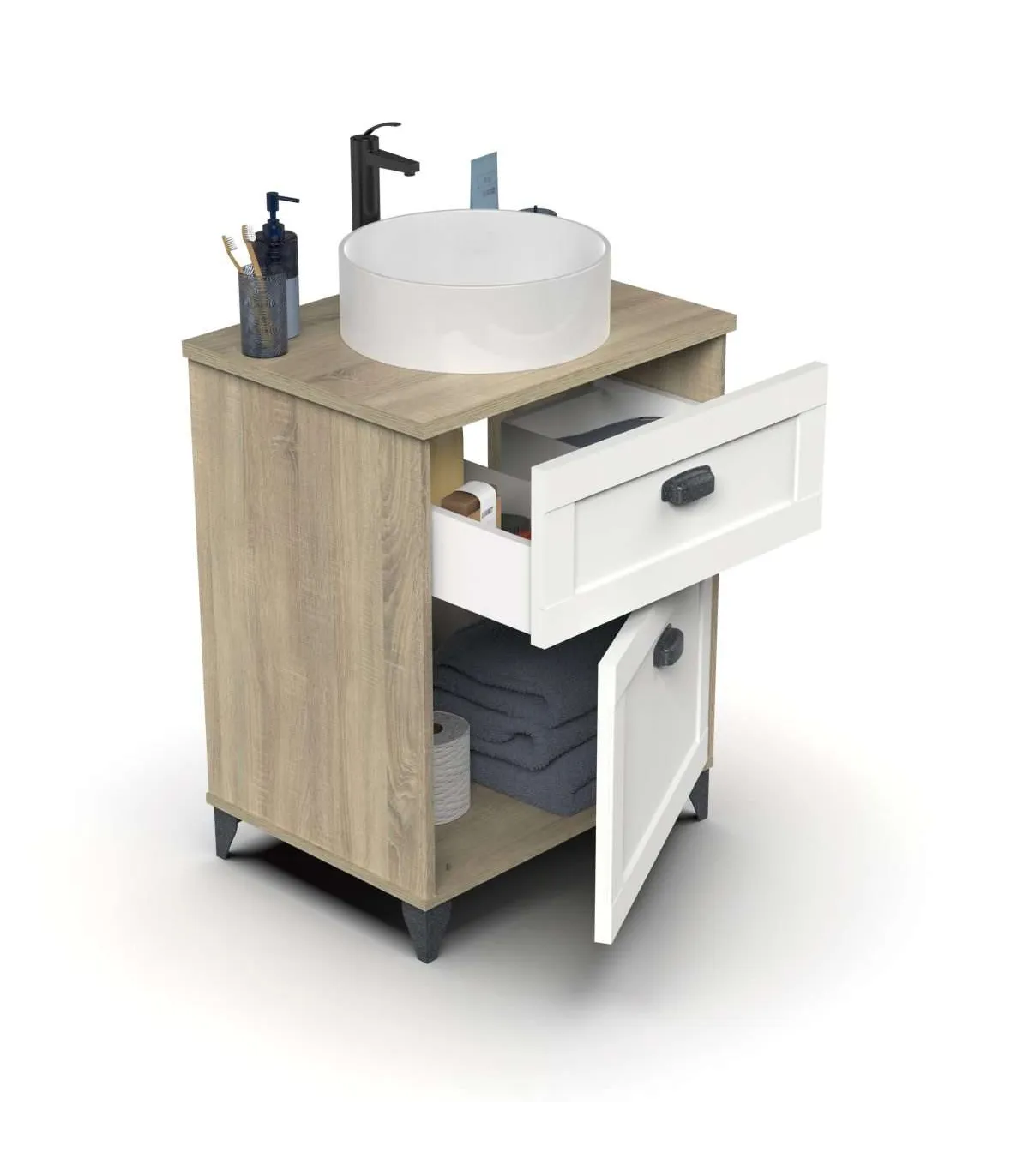 The Tuscan sink is a piece for lovers of the cottage. The Cambrian finish lid highlights a ceramic washbasin with subtle curves complete with handles and legs in metallic finish.