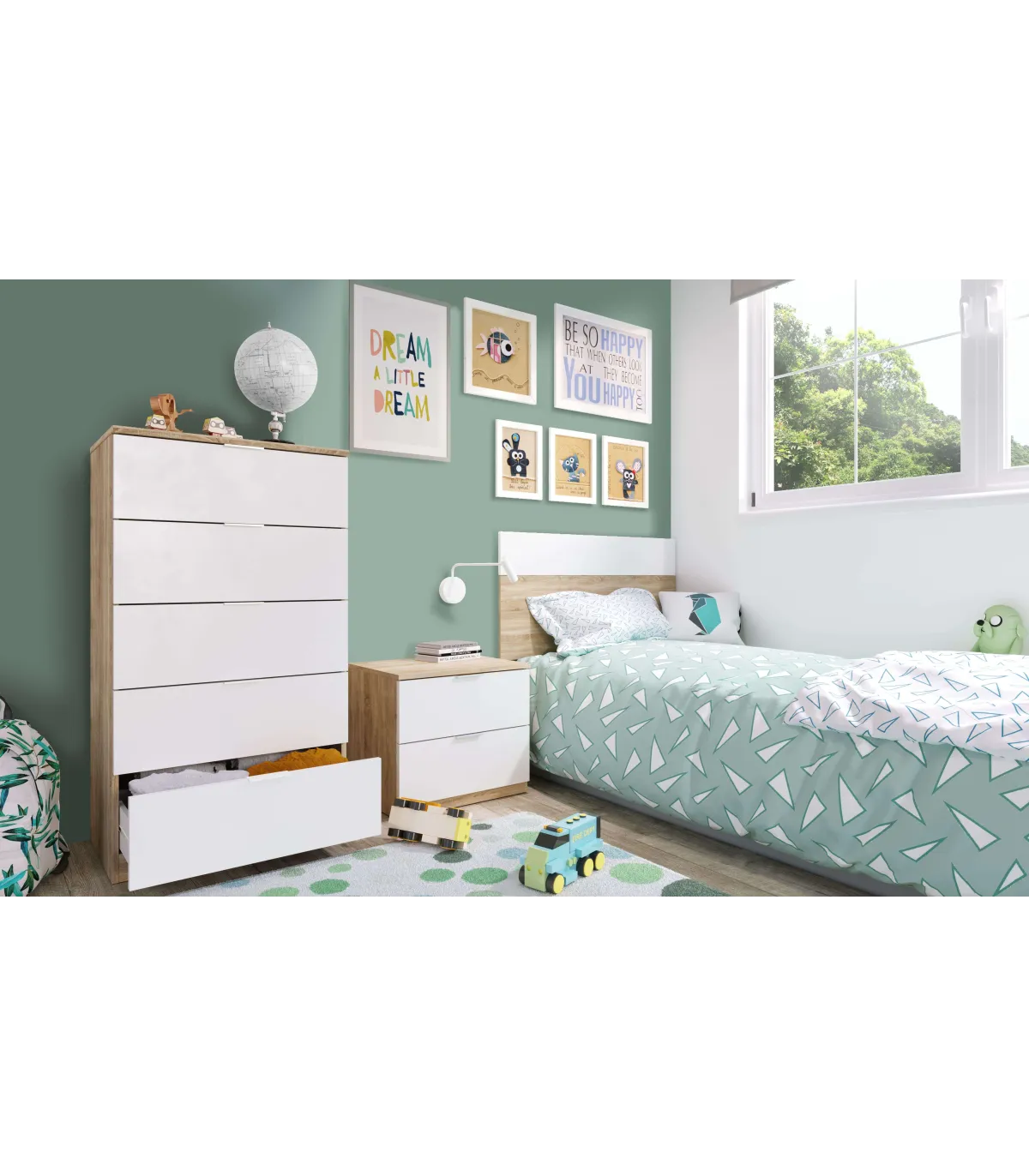 This bedroom is composed of headboard + 2 tables + wardrobe (bed not included)