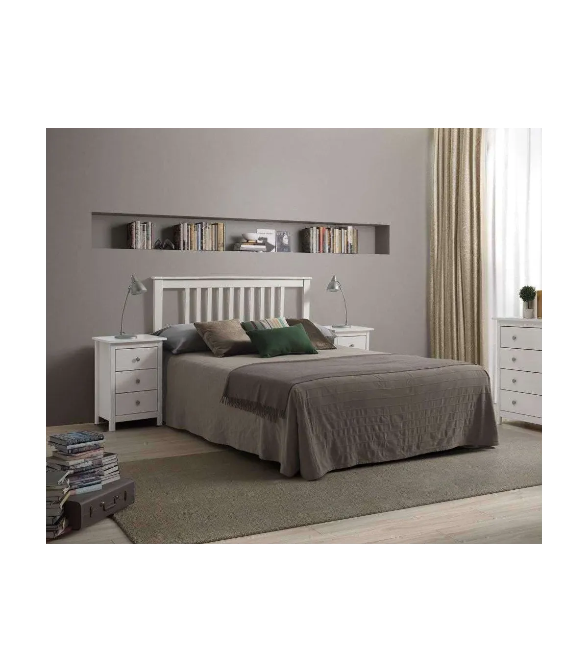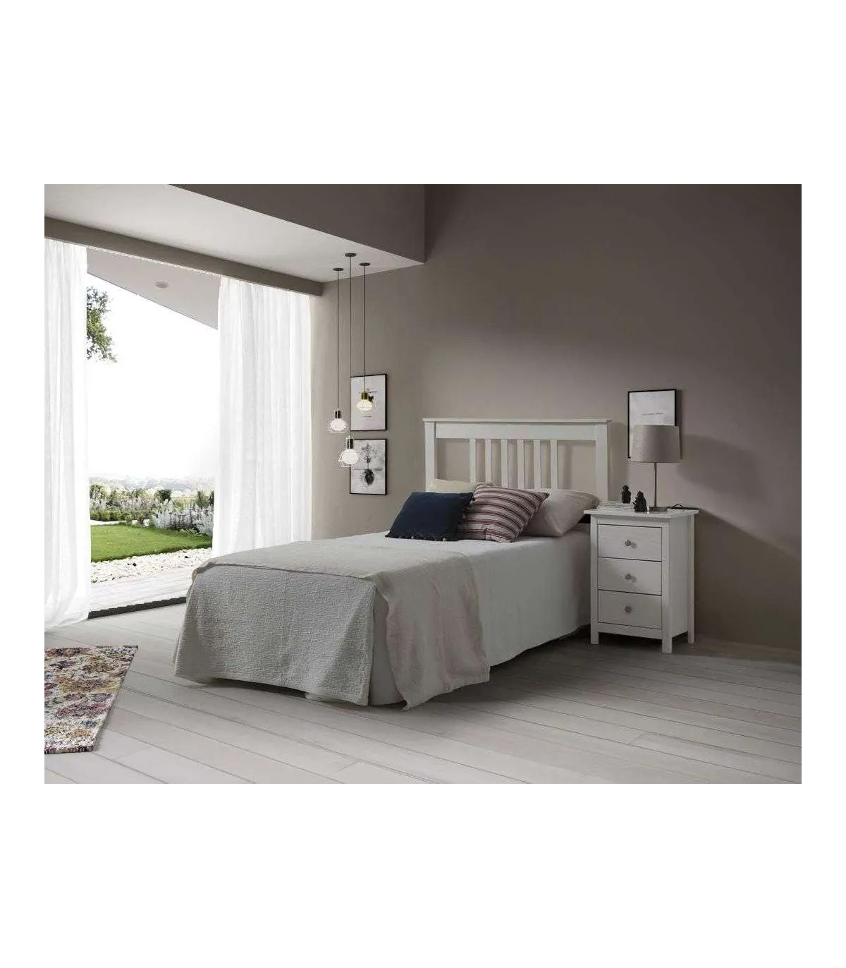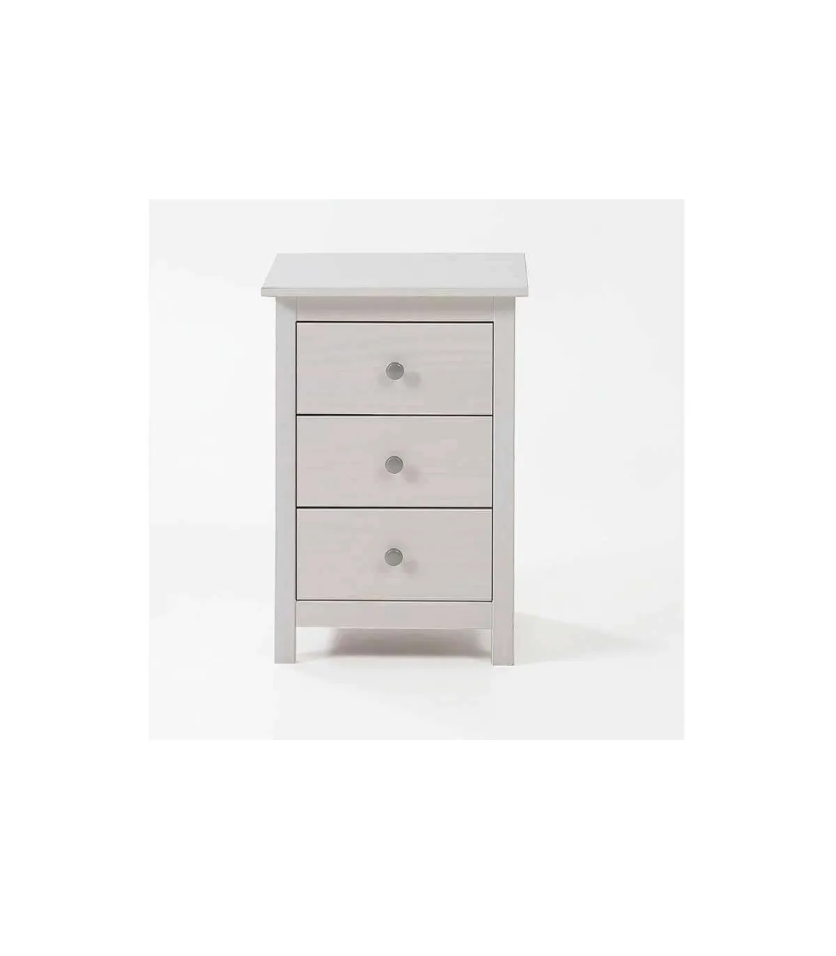 Table of three drawers in solid translucent white pine wood that lets you see the vein of the wood.