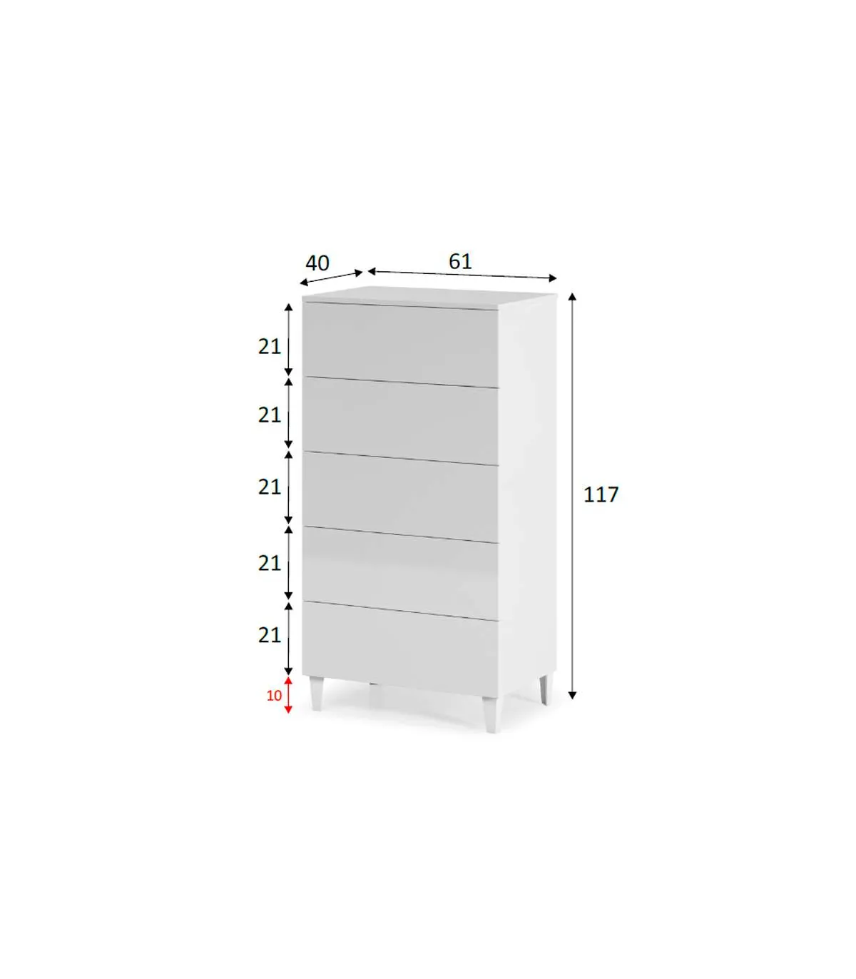 Practical and elegant is comfortable bedroom with simple lines but never goes out of style thanks to its design and its bright white color with five large capacity drawers. It is perfect for any type of bedroom both juvenile and double.