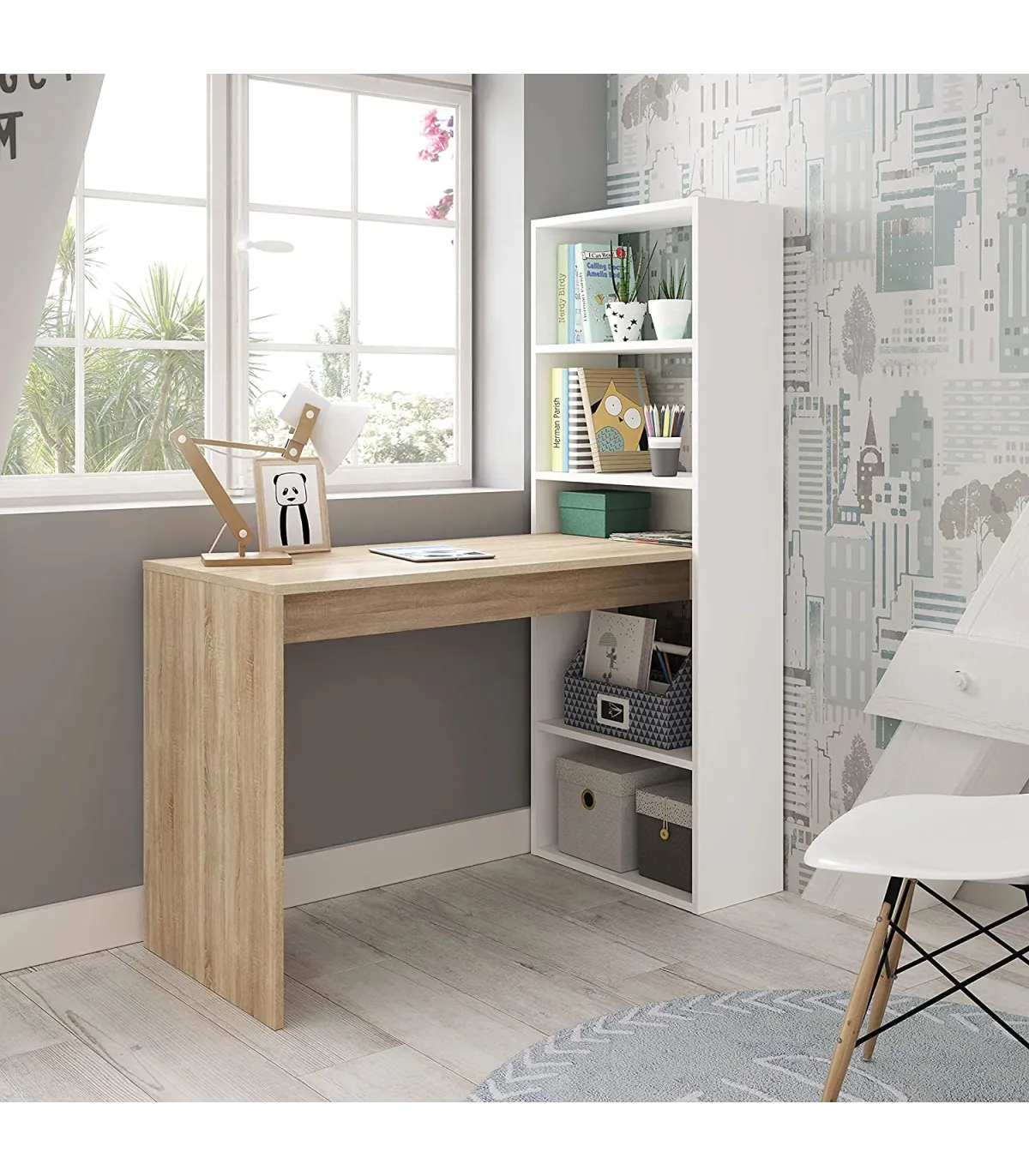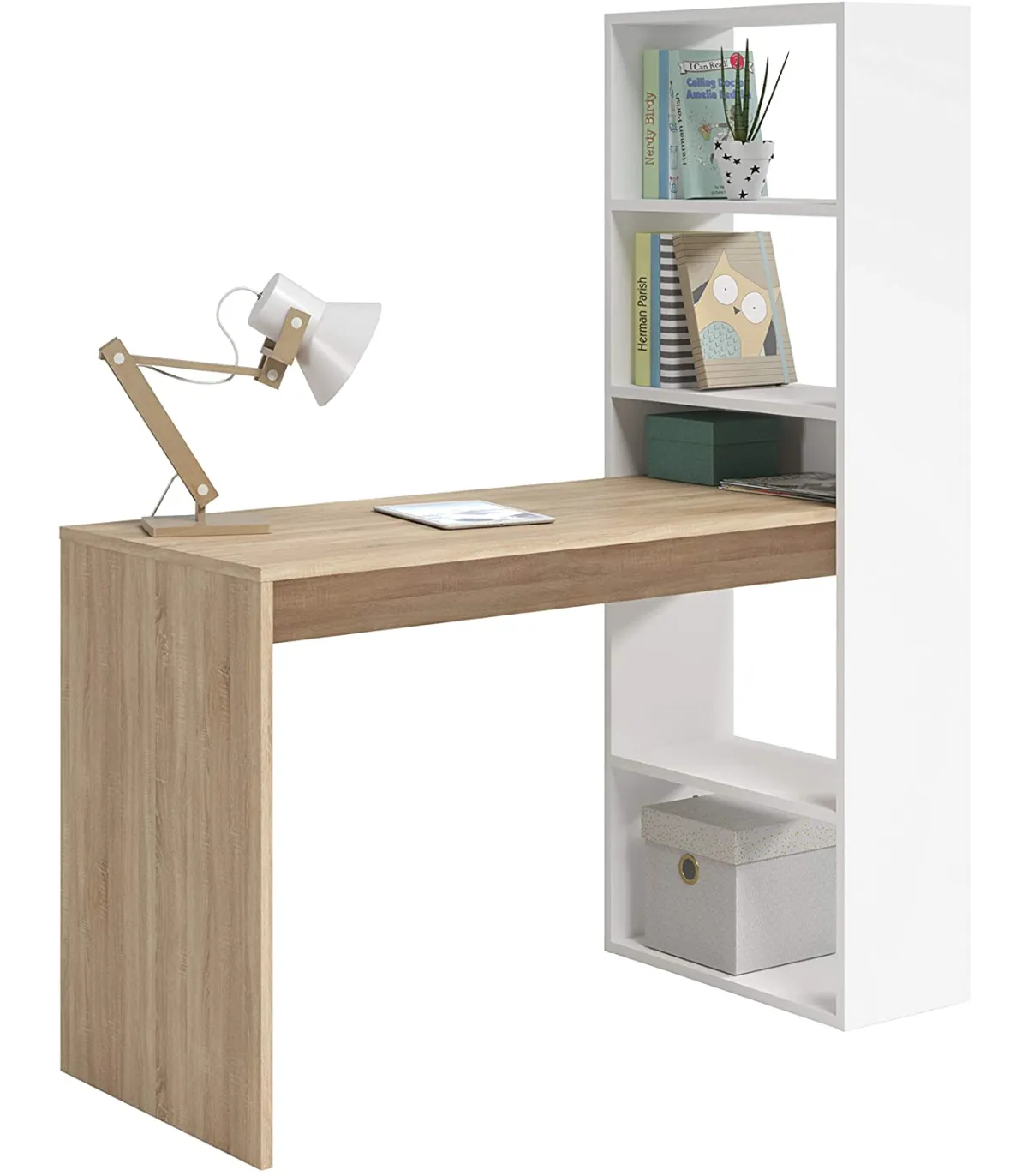 Desktop table in blancoartik or white/cambrian with an incredible price and very good quality. It is perfect for the youngest in the house or even for your office or office, it also has a reversible shelf where you can maintain the order you are looking for perfectly and you can put right or left according to your needs.