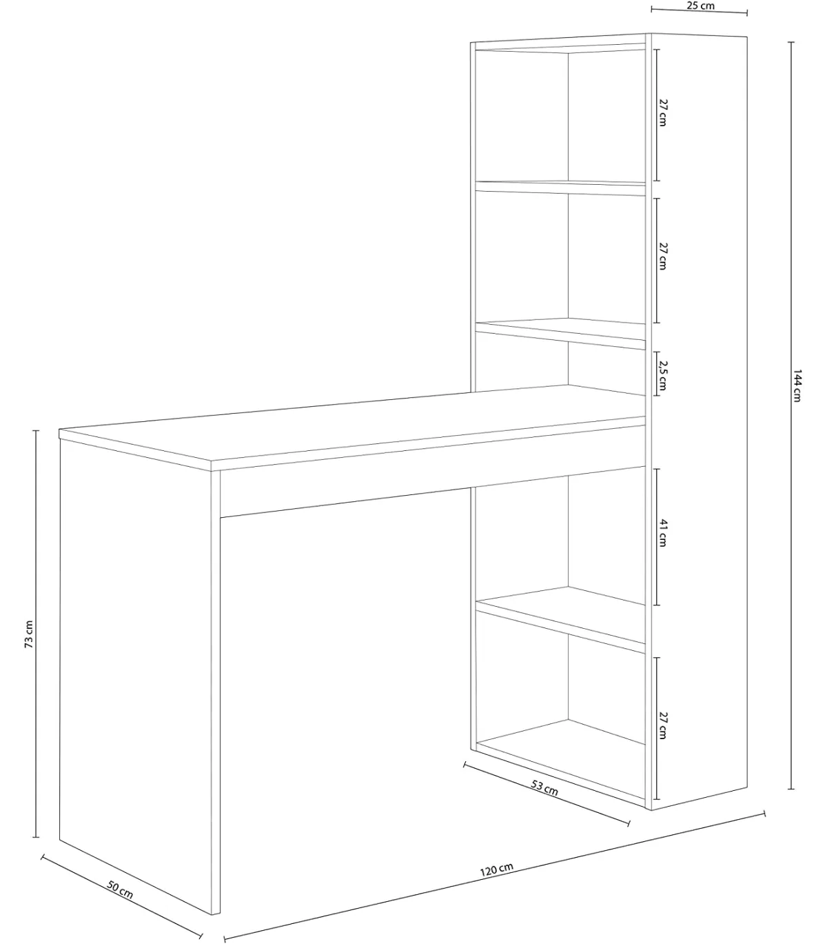 • Shelf dimensions: 25 cm (width) x 144 cm (height) x 54 cm (bottom).