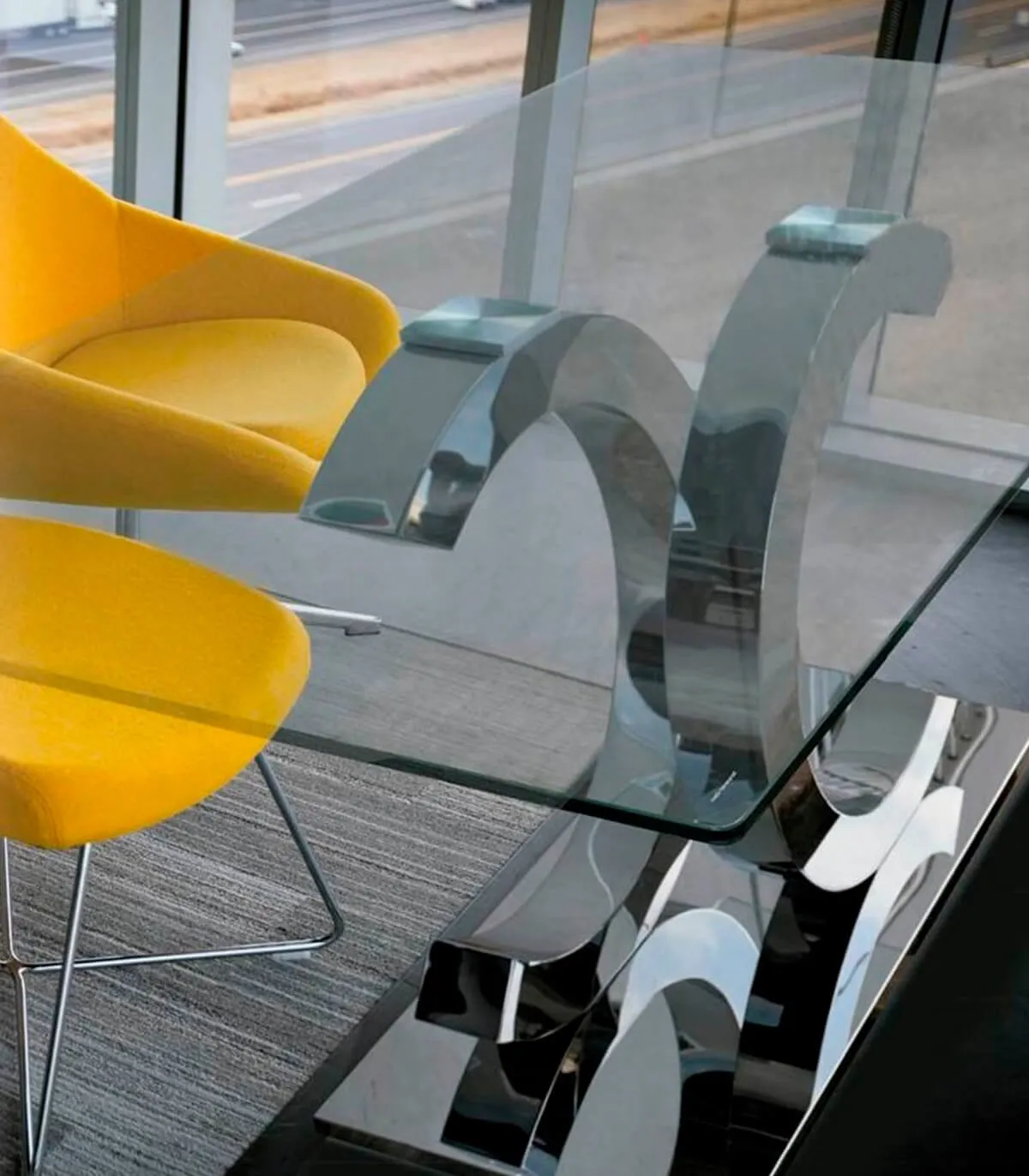 Brandy coffee table with transparent top glass and translucent bottom crystals.