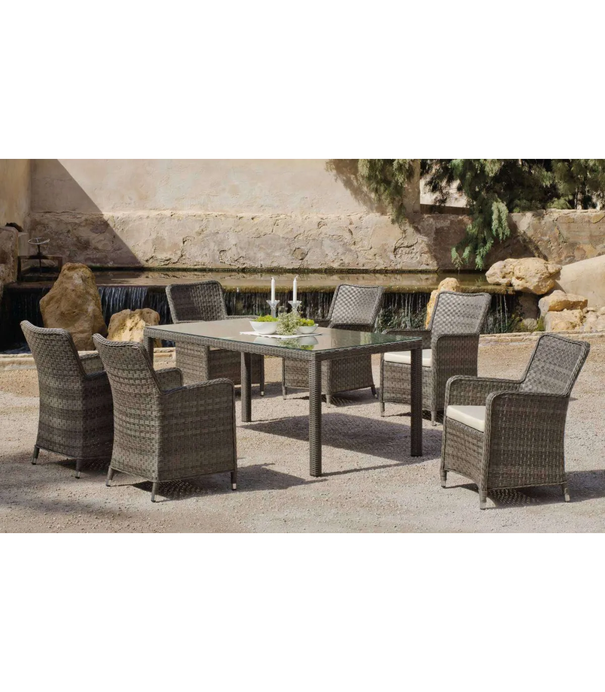 Metal structure made of stainless steel molded by cast iron, coated with huitex (synthetic marrow) of hand-braided anthracite color.