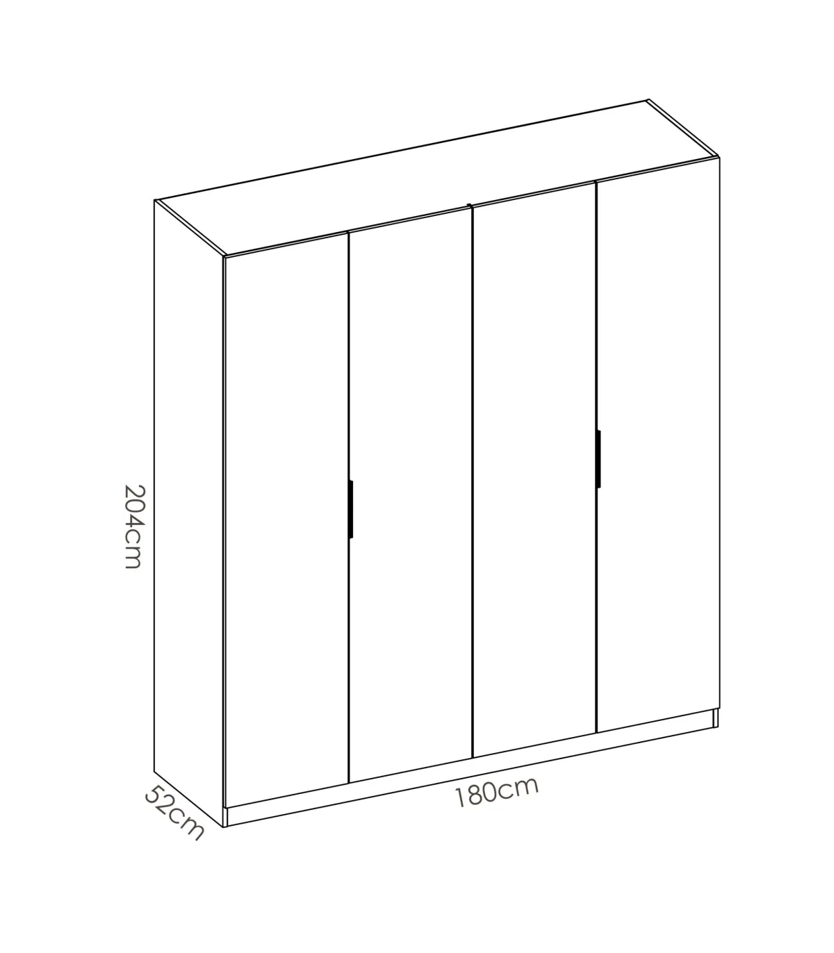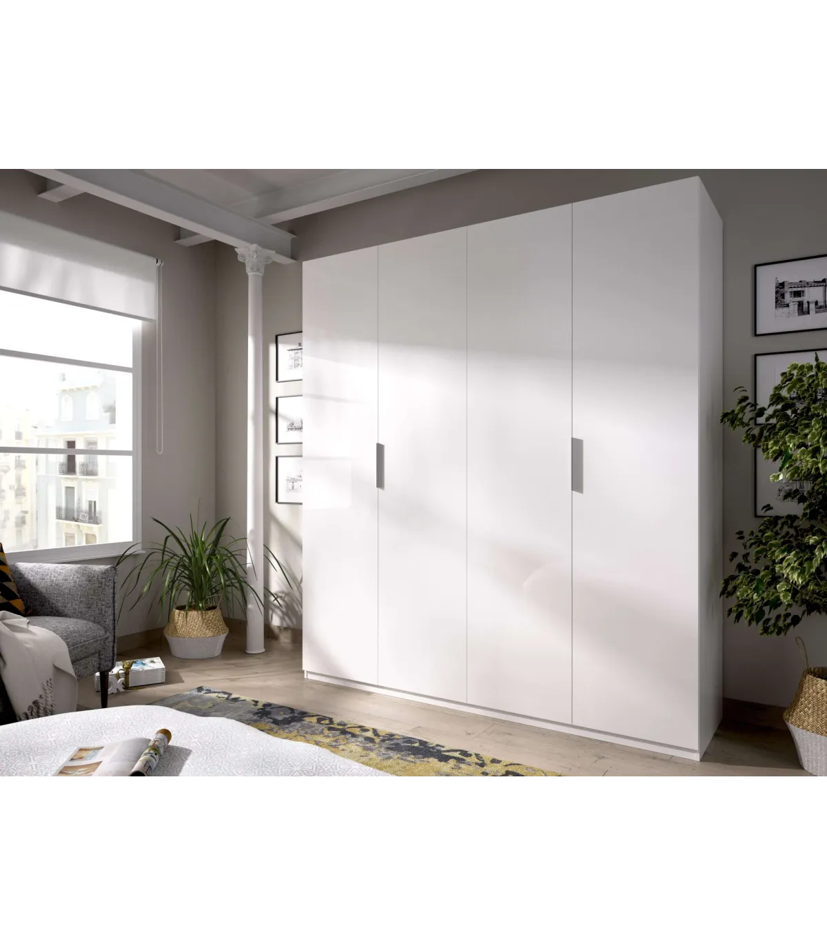 High wardrobe with four folding doors in bright white ideal for any type of bedroom. It is perfect for any room and has a large storage capacity. It is made of high quality melamine.