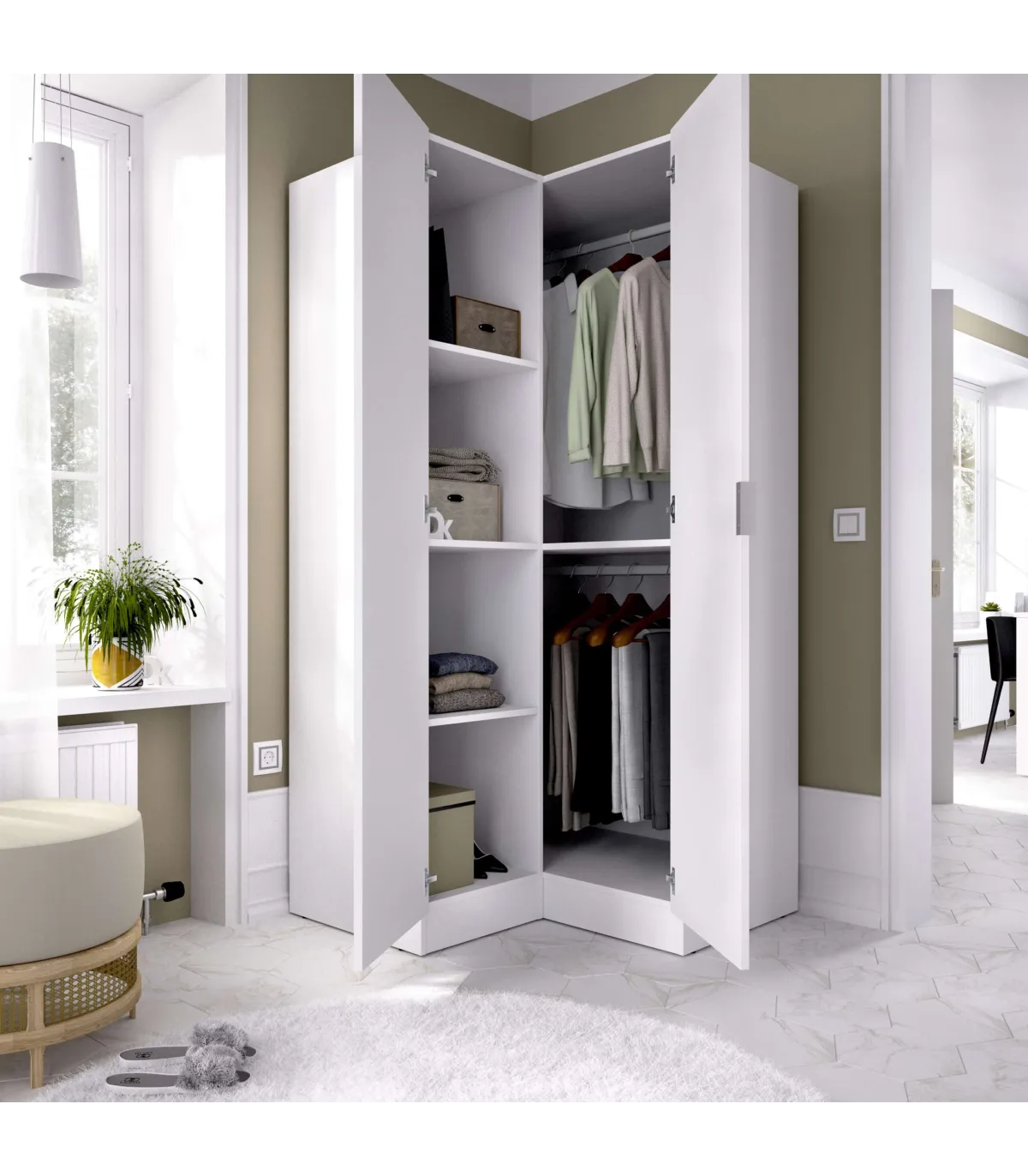 High wardrobe with three folding doors in artic color ideal for any type of bedroom. It is perfect for any room and has a large storage capacity. It is made of high quality melamine.