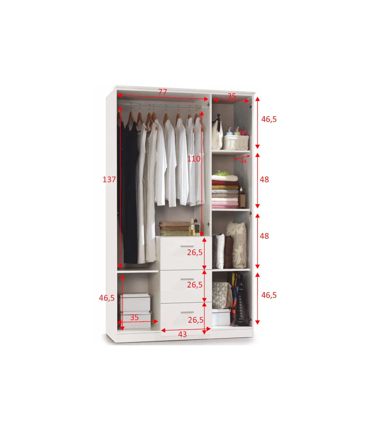 Multipurpose Wardrobe Use 2 doors with 3 height adjustable shelves to give you different ways to use it as it is suitable for everything you need.
