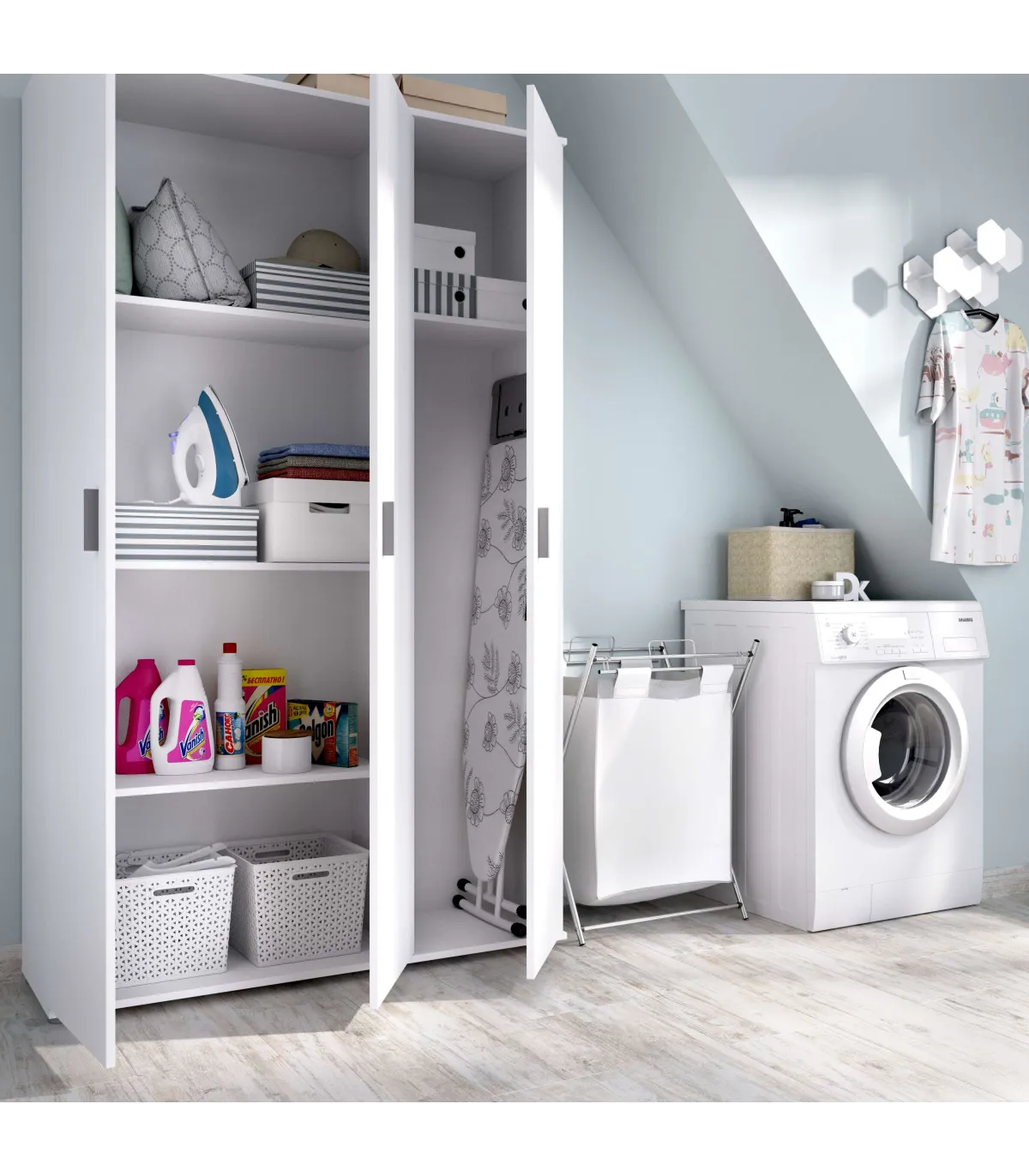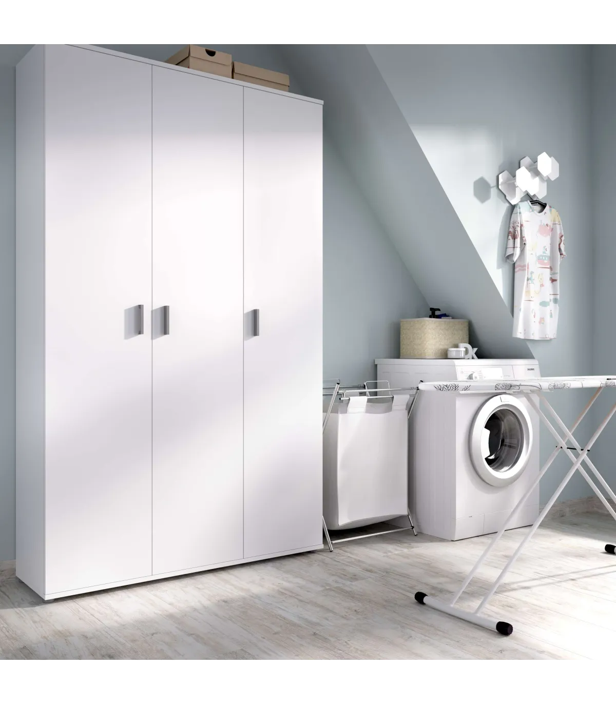 Multipurpose white wardrobe with three doors, perfect to put anywhere you need extra space and that everything is tidy. Its white color and its design in straight lines makes it match any type of furniture.