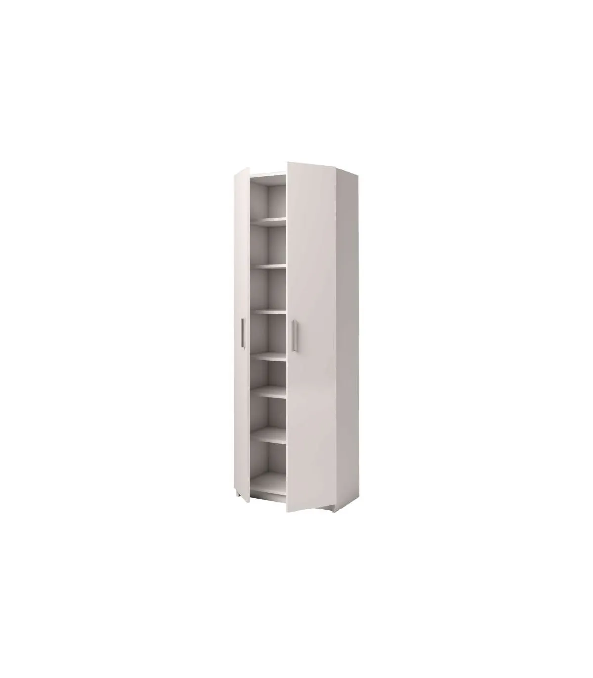 Practical Multipurpose Wardrobe in cortez oak or white with two doors that you can put in any room. It is perfect for storing objects and preventing space from being cluttered. Its straight lines make it look good with any decoration.