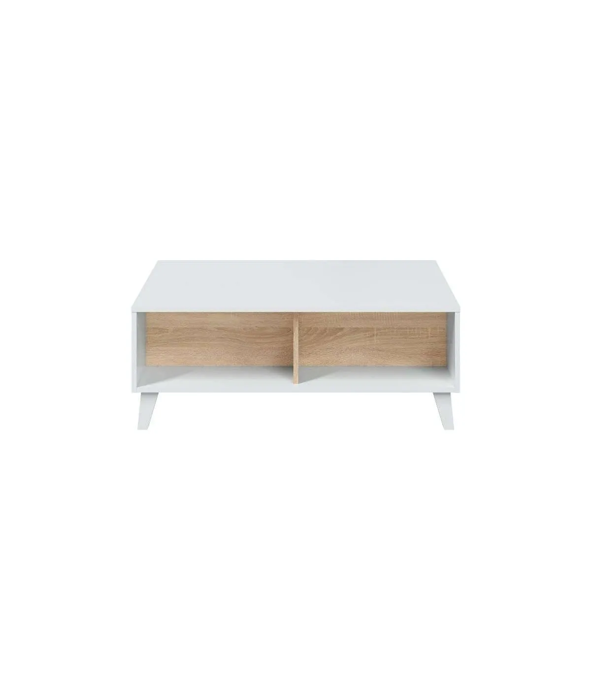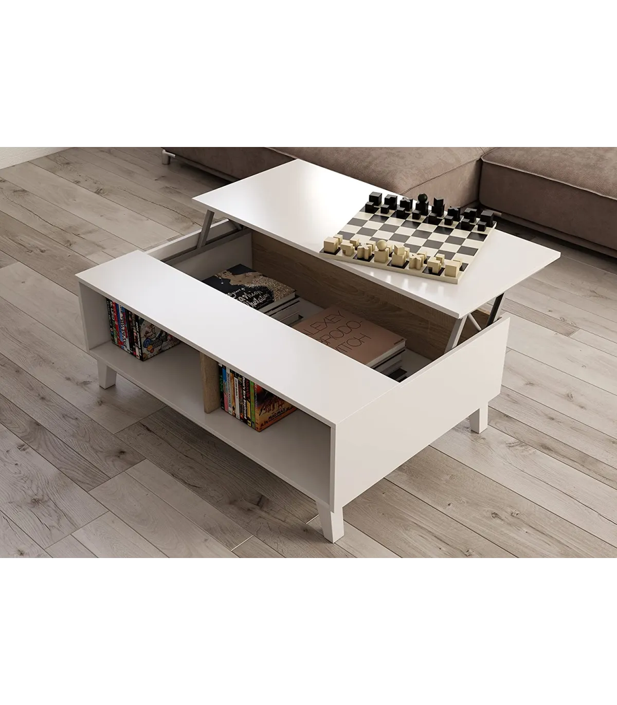 Zaiken liftable coffee table in white and Canadian oak