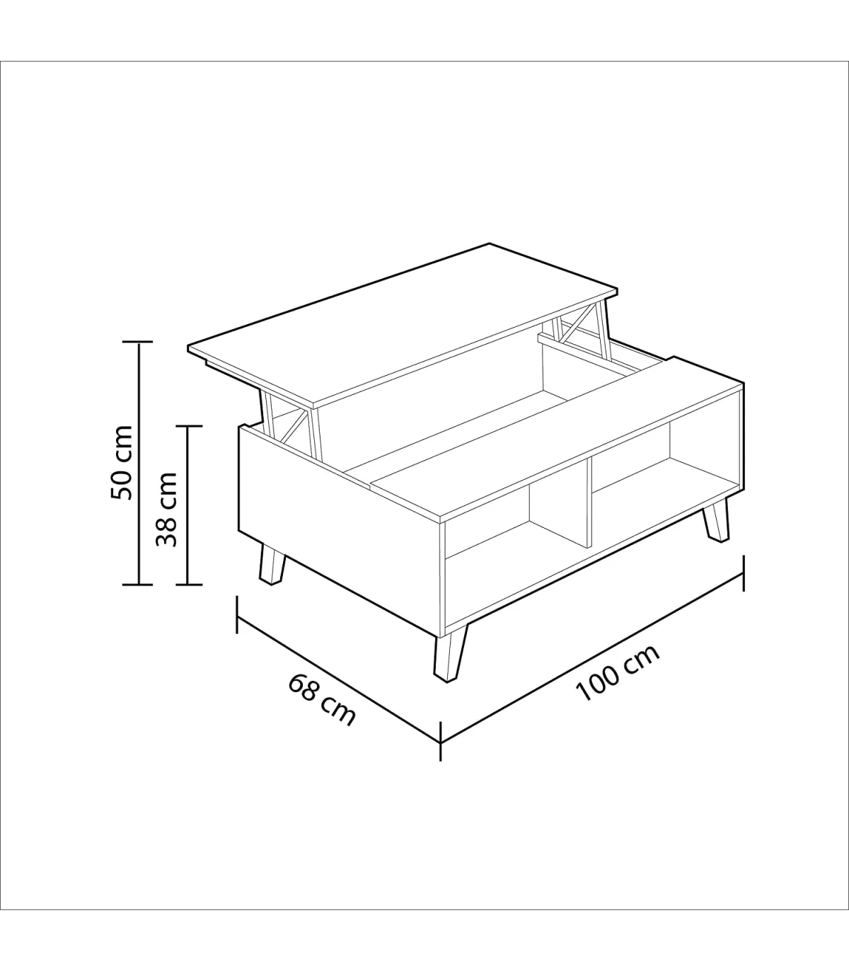 · 38-50 cm (height) x 100 cm (width) x 68 cm (prof.)