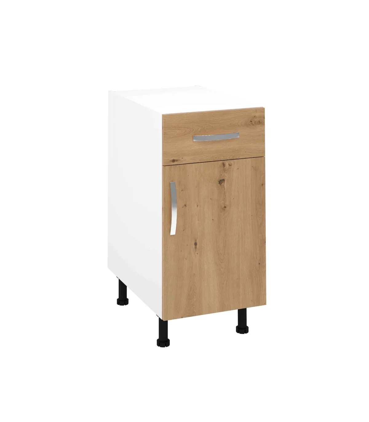 Low furniture with 1 drawer and 1 door at an incredible price. It is available in several colours: burgundy, beech, white and oak