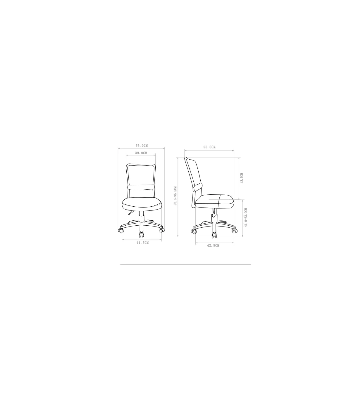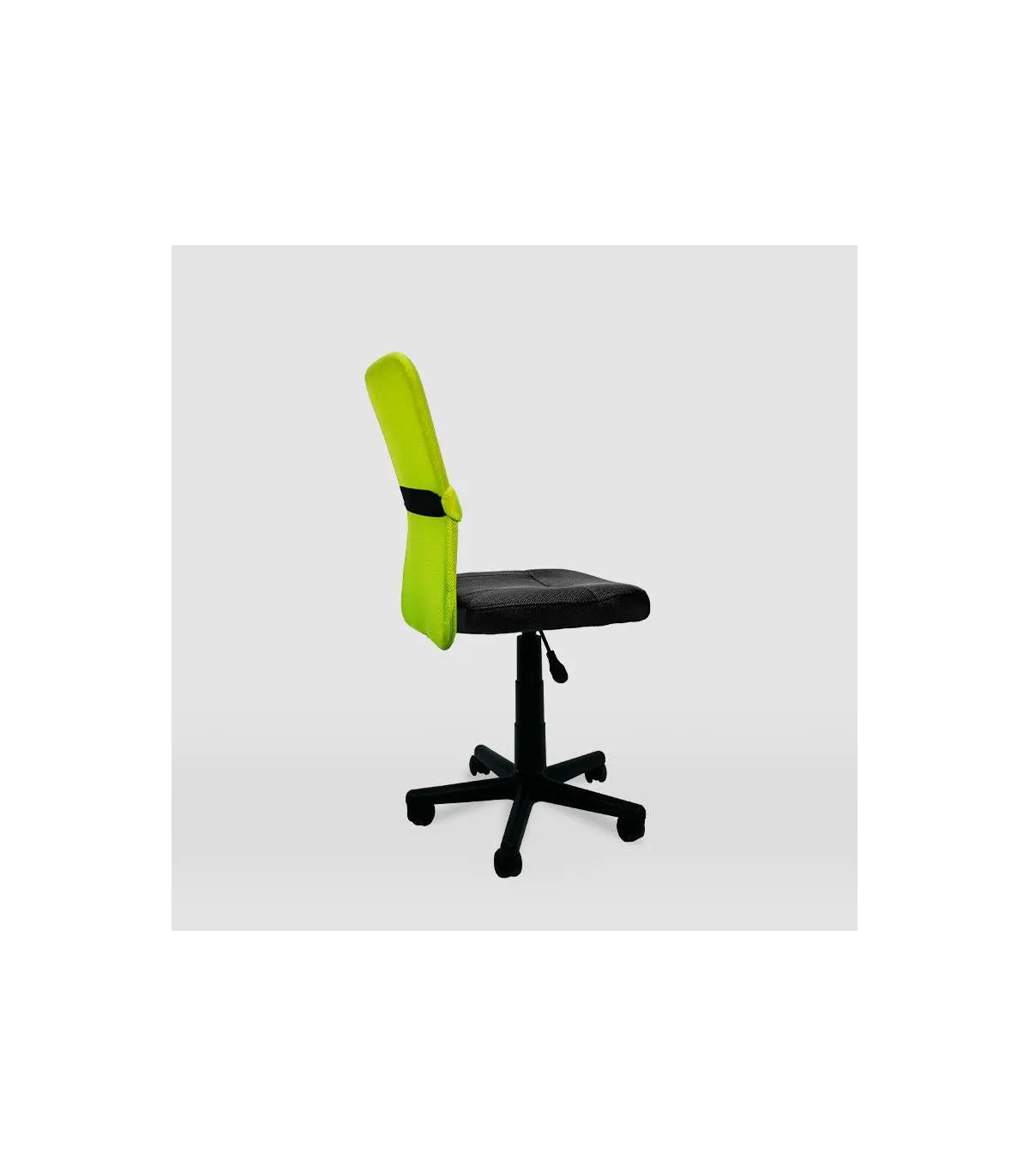 This armchair is swivel and also height adjustable to be comfortable when working. Bottom with five-wheel base in black so you can move it comfortably.