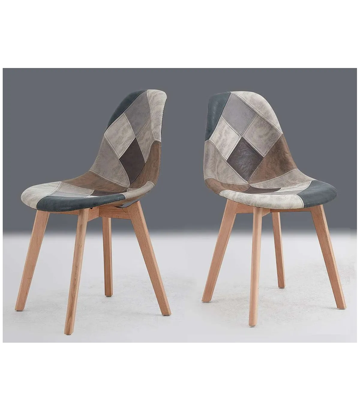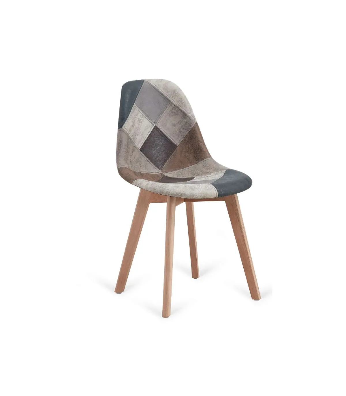 Patchwork upholstered chair with solid beech wood legs