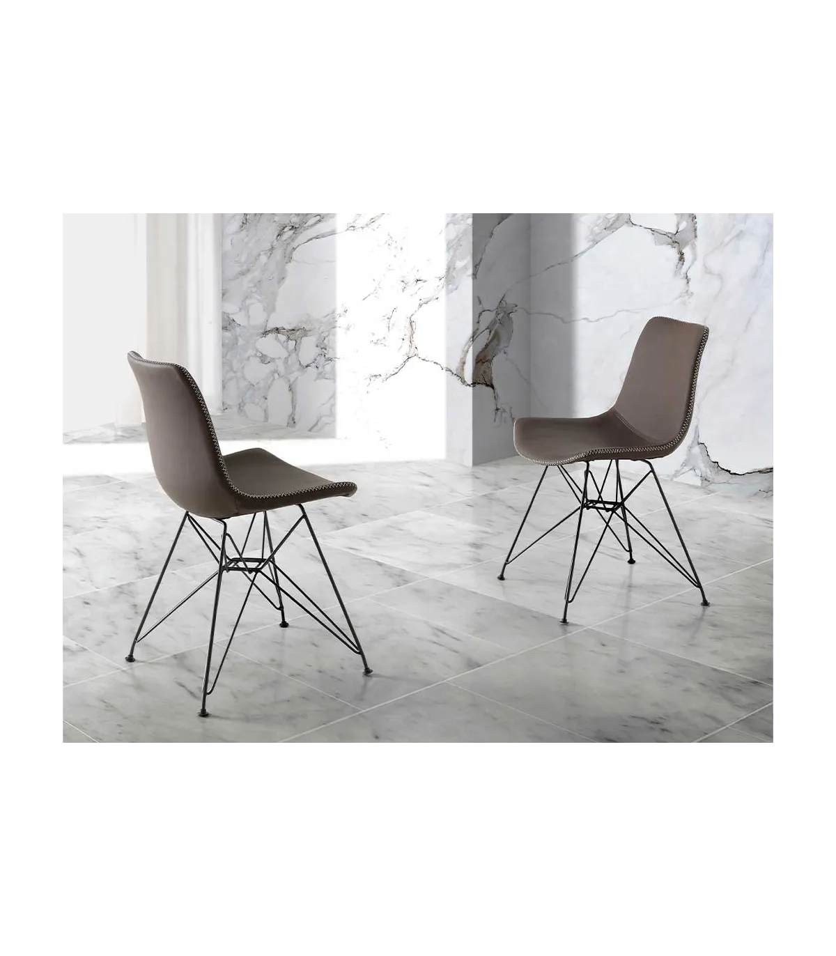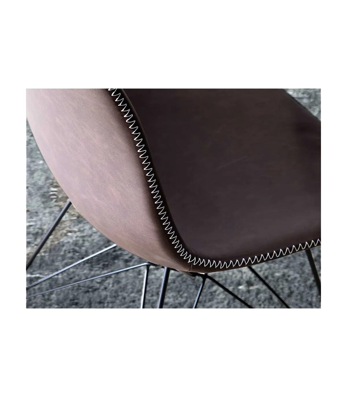 Pack of 2 dining chairs upholstered in soft touch eco-leather in brown bark with zigzag stitching.