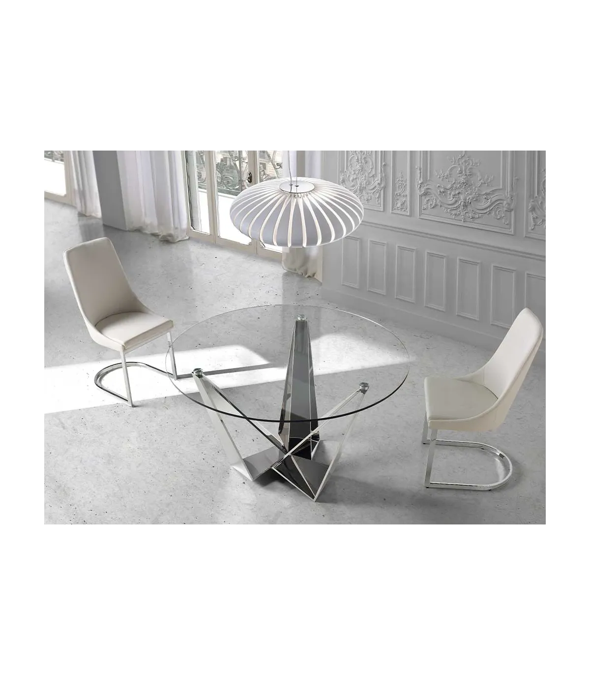 Its structure is made of cantilevered metal plated in double chrome.