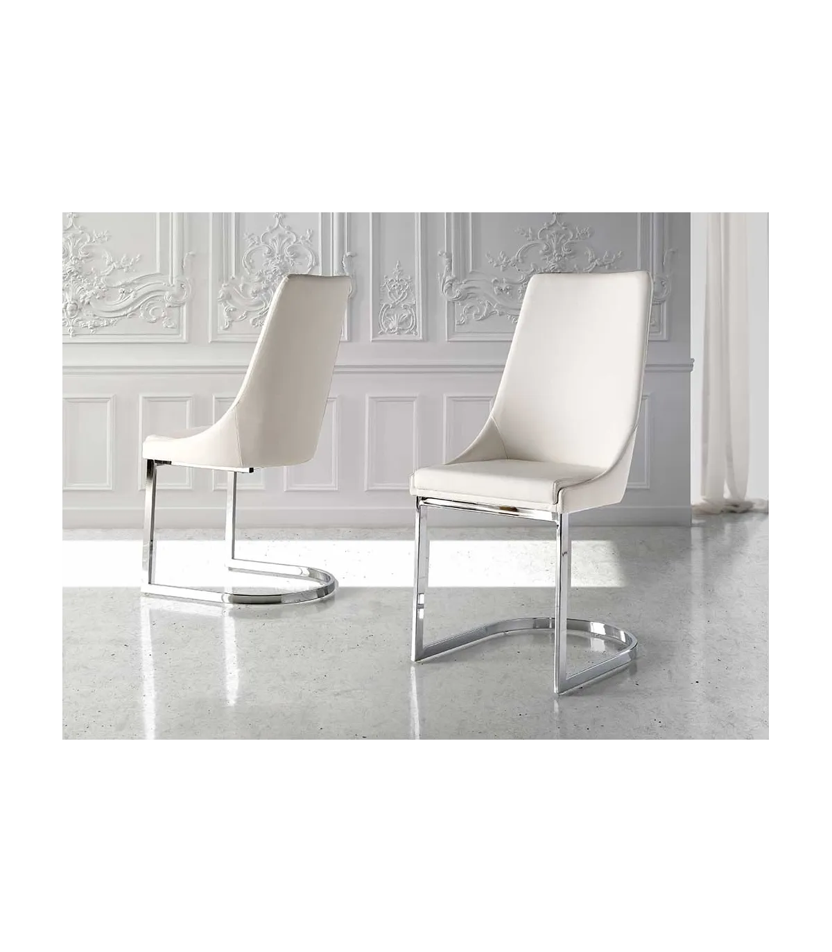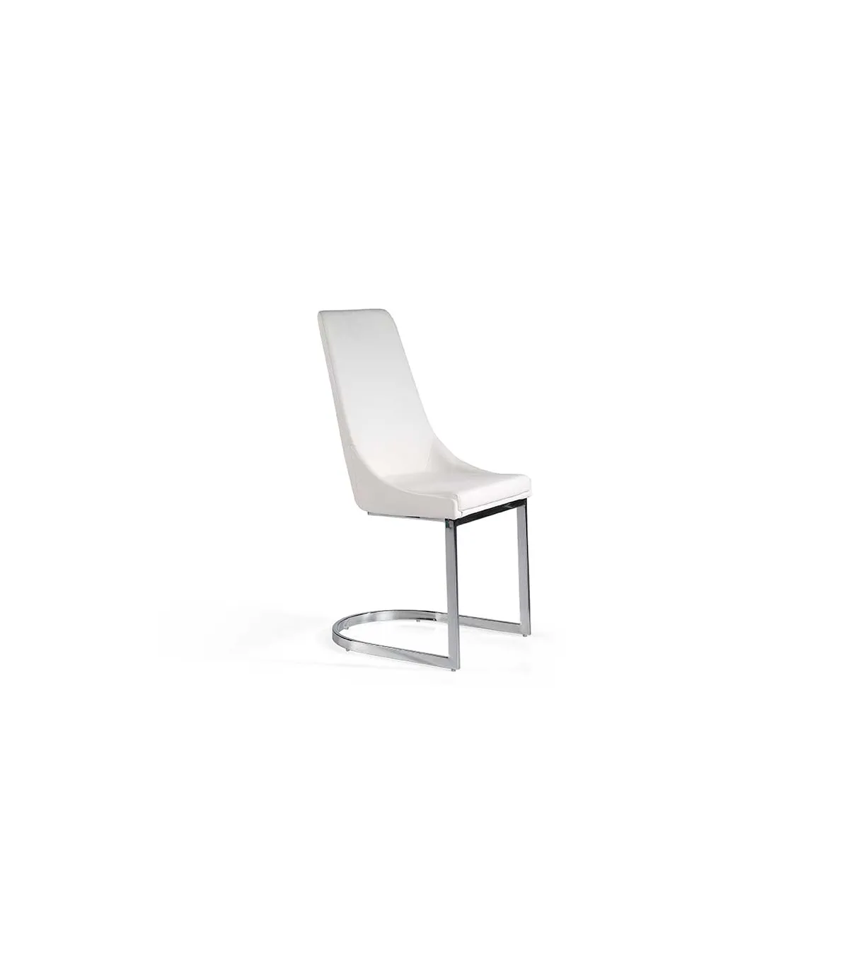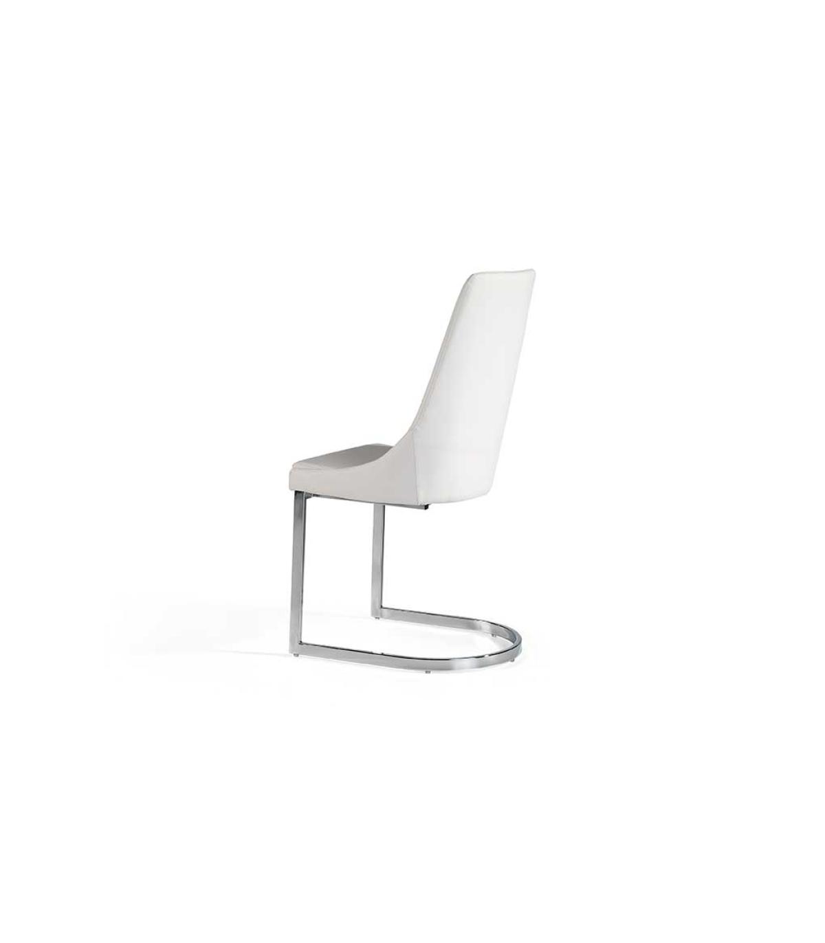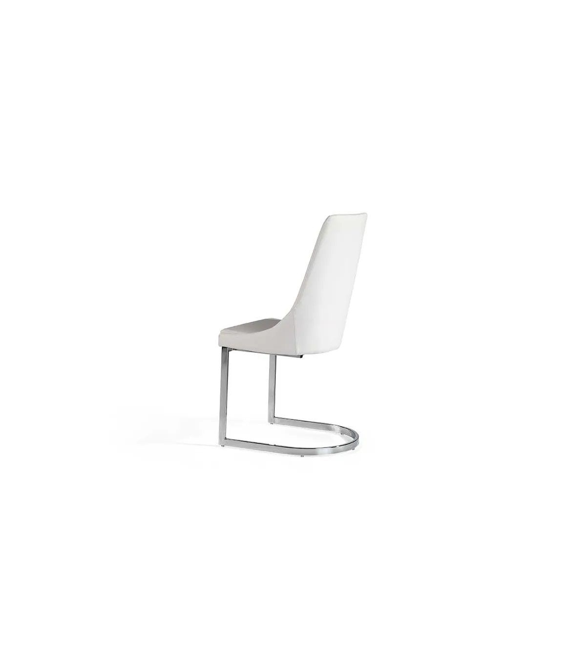 Dining chair upholstered in white faux leather.
