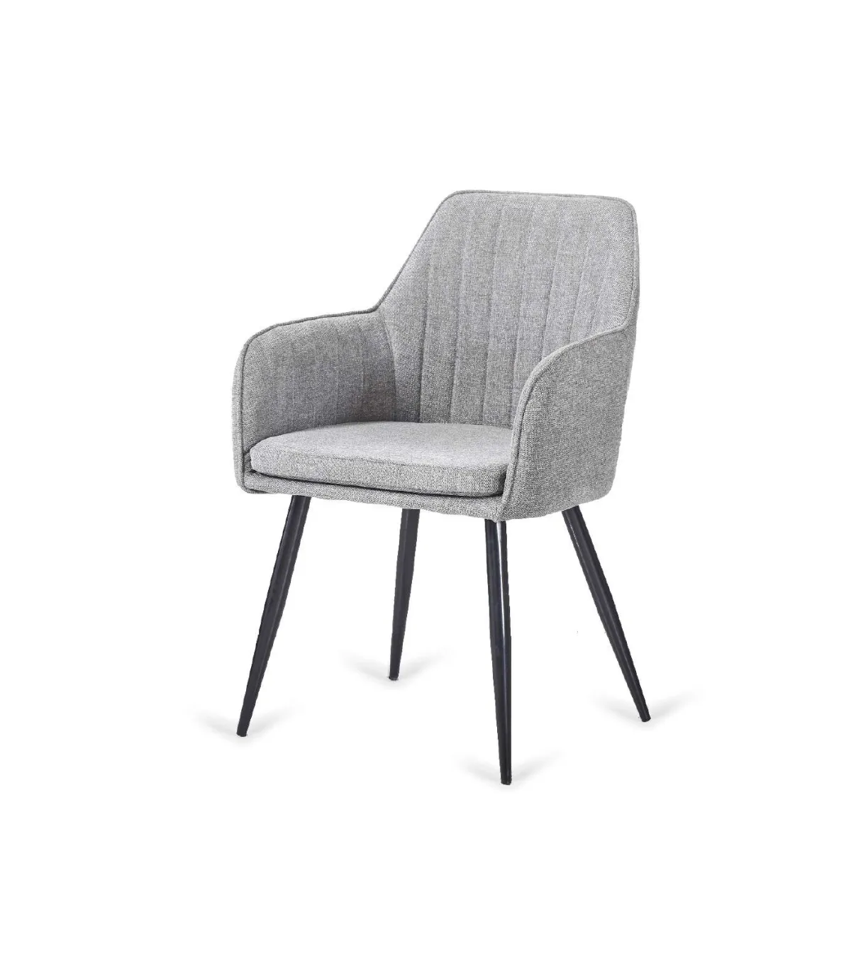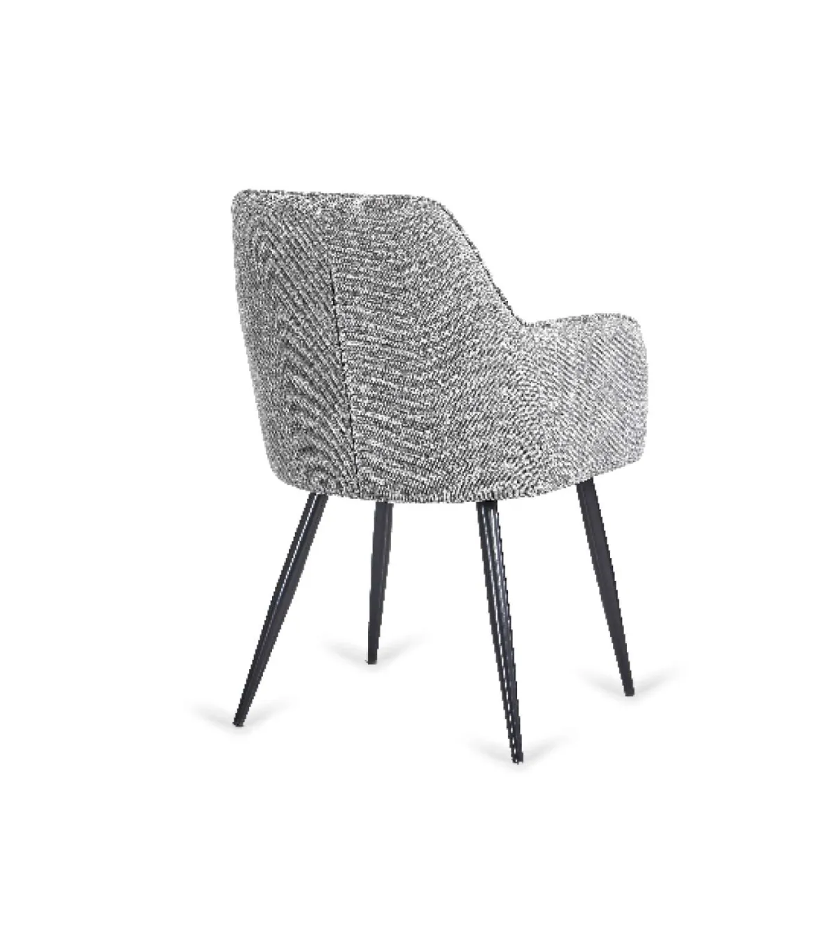 Pack of 4 Chairs with rounded shapes upholstered in LIDO GREY fabric. Metal legs