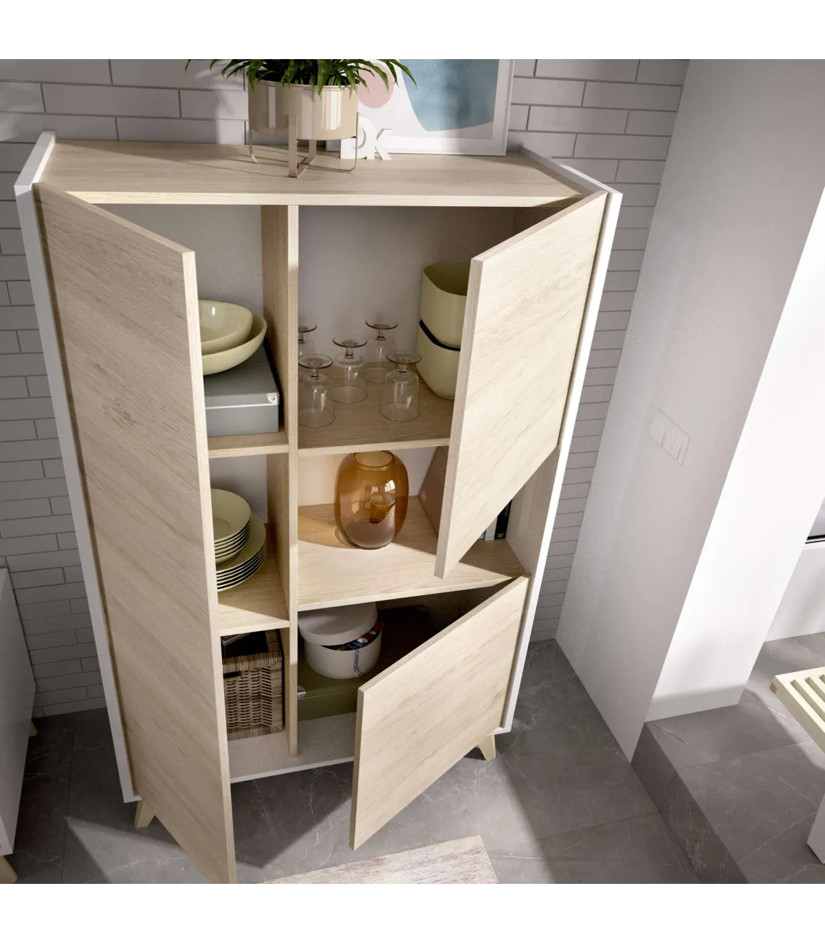 Salon Ness 3 set is very elegant and with a modern design that will not leave anyone indifferent due to its style and its colors combined in graphite and natural. This set consists of four pieces, sideboard 3 doors, bookshelf, television furniture and raised coffee table.