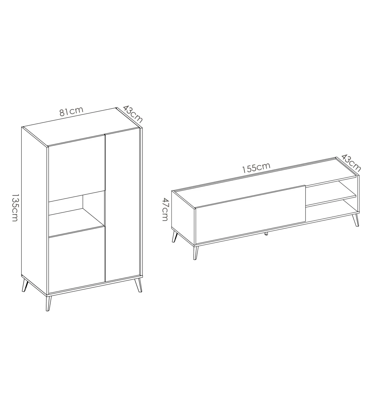 FURNITURE UNDER TELEVISION: Height 47 cm Width 155 cm Bottom 43 cm.