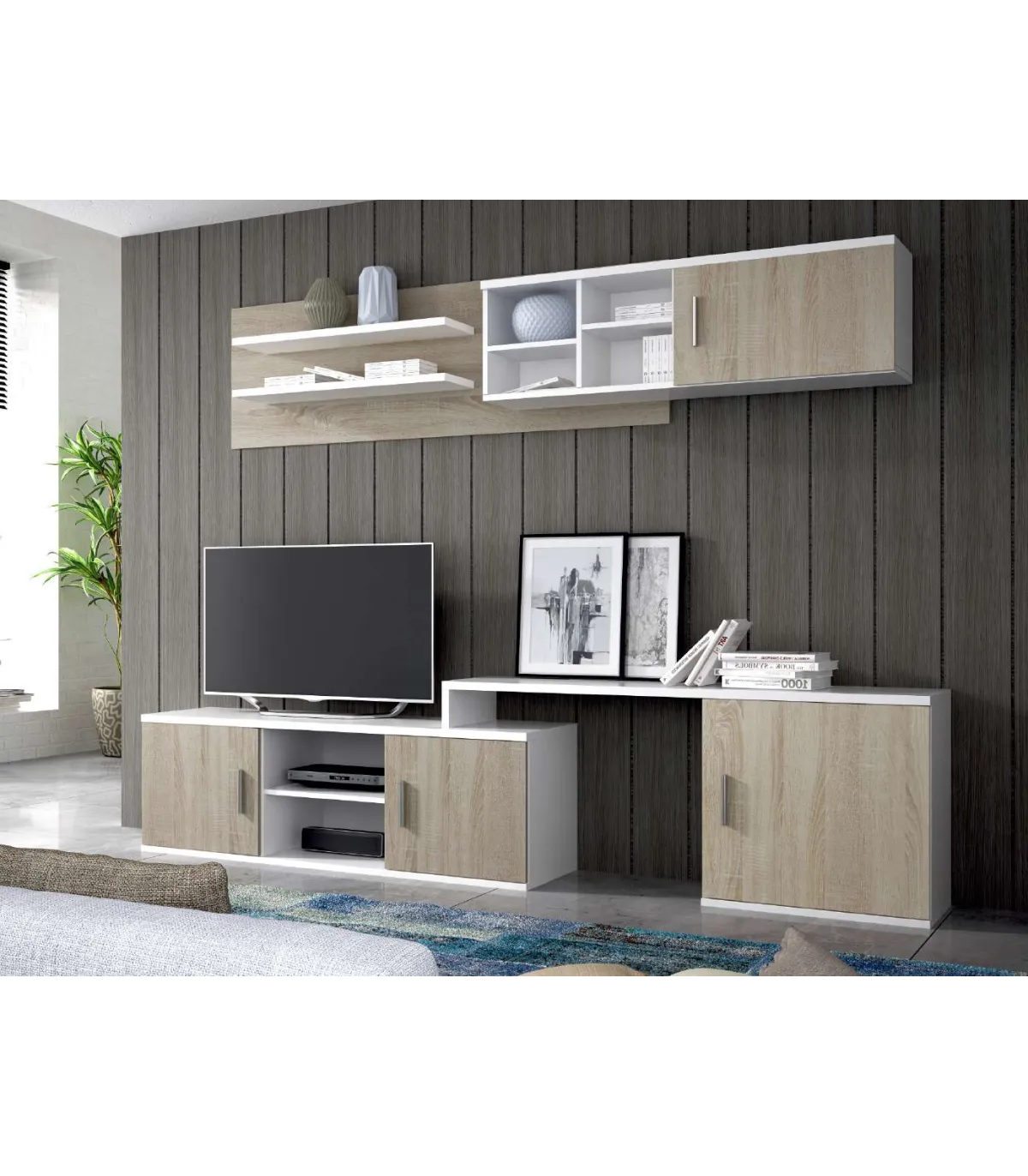 Composition of Moscow lounge of 284 cm. of particle board and vinyled simil wood. SONOMA ROBLE color.