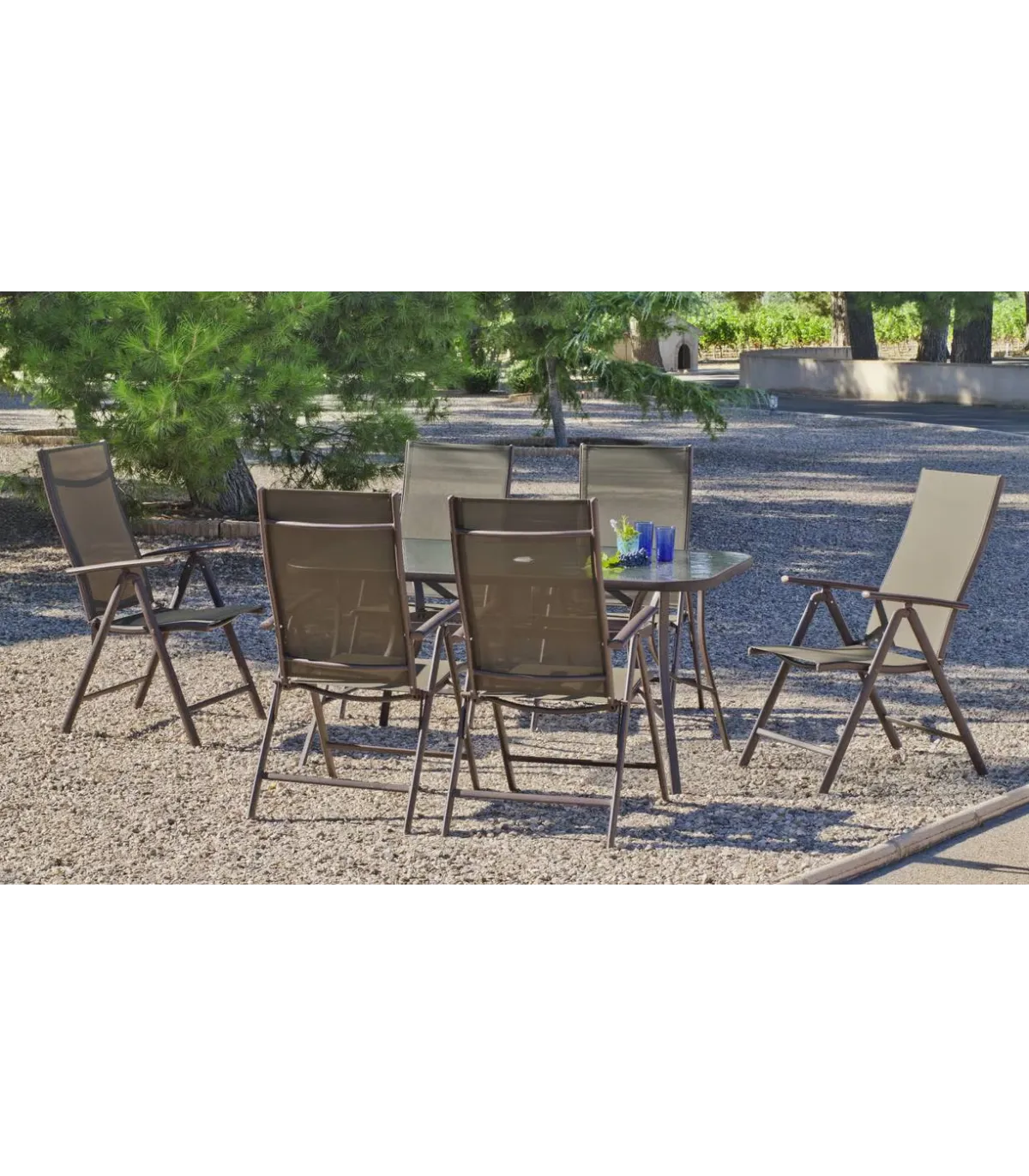 Set table + 4 armchairs for garden and terrace, made of steel. Bronze structure.