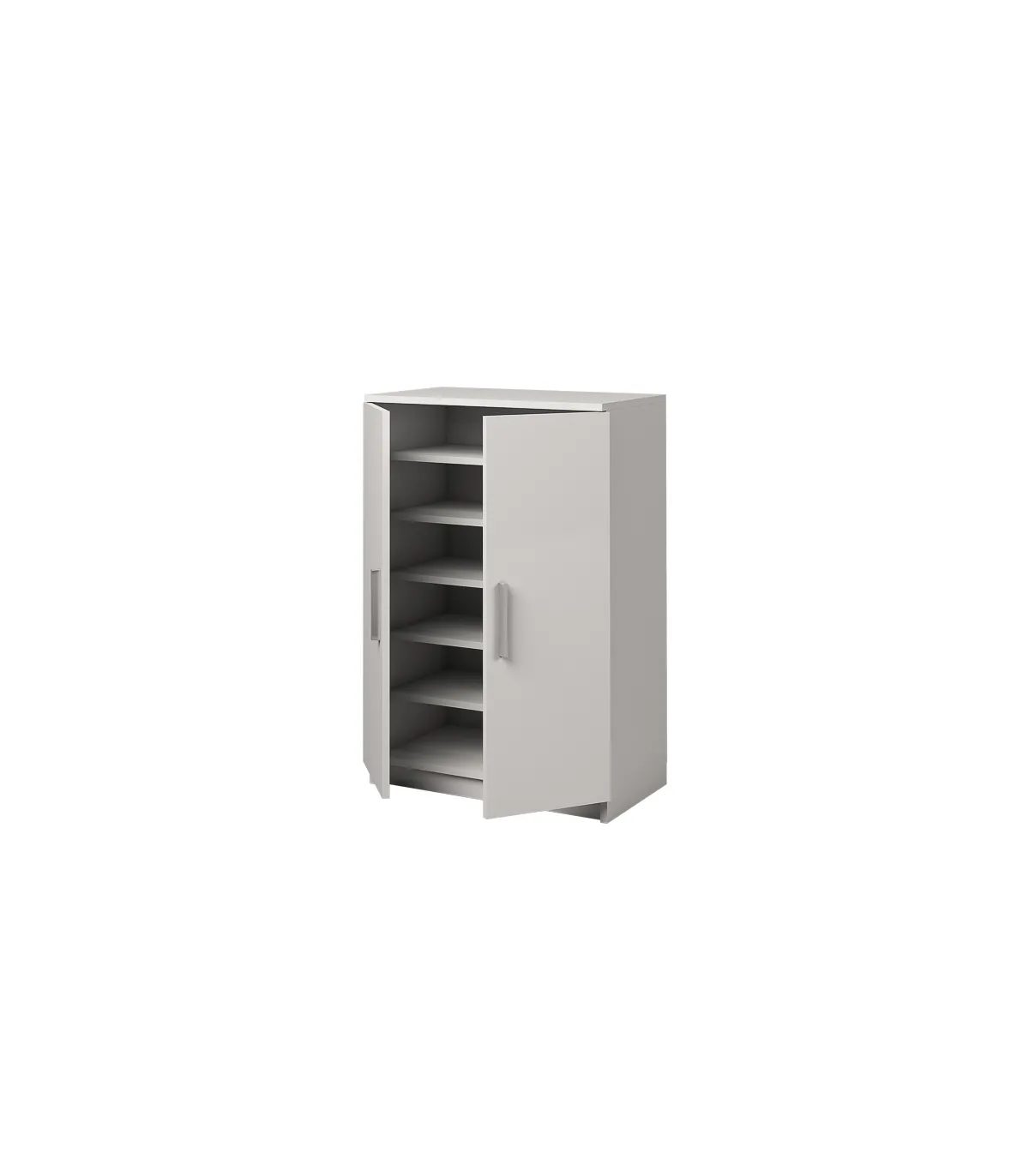 Functional Low Multipurpose Wardrobe in white with two doors that you can put in any room. Large capacity to be able to store everything you don't want to be in sight.