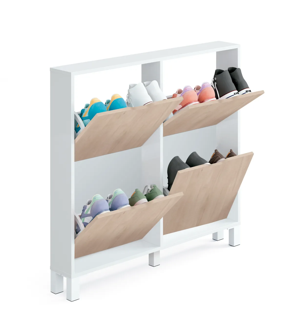 It is composed of four tramp, has a capacity of 8 pairs of shoes approx. It is available in bright white or bright white/aurora.