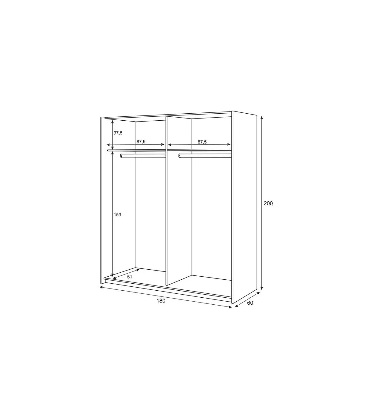 Linuss 180 cm closet cabinet with 2 sliding doors 200 cm high x 180 cm wide x 60 cm deep
