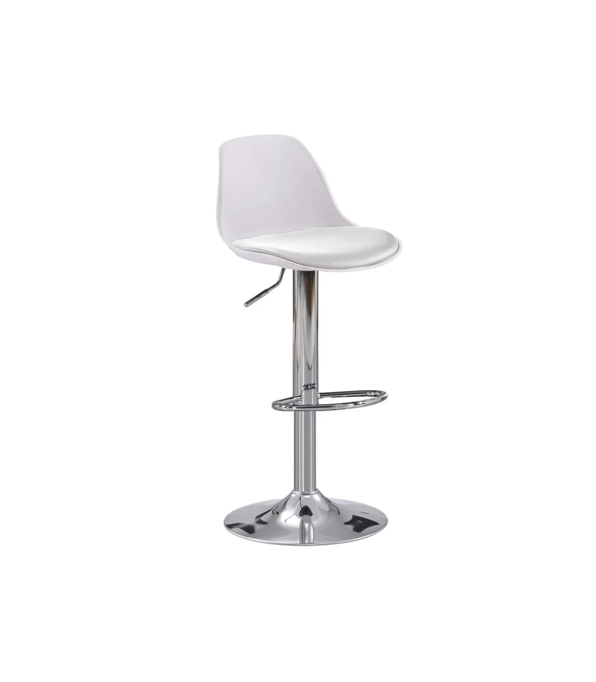 Pack of 2 comfortable height adjustable stools with design seat and built-in cushion upholstered in leather. Leg, footrest and chrome base. It will look fabulous in your kitchen and you can choose the seat in white, grey or black.