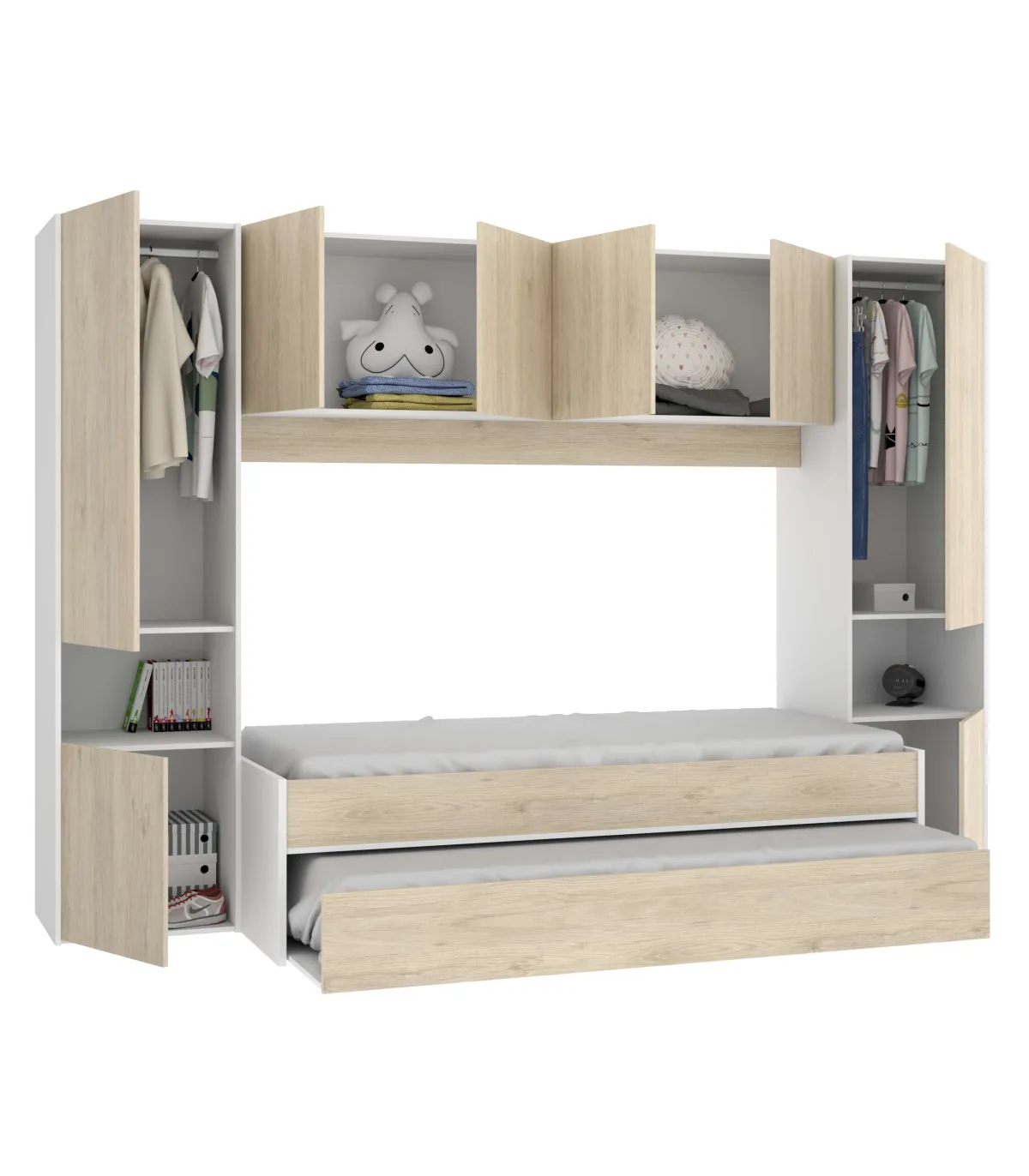 Youth set of two beds, mezzanine and wardrobe, beds of 90×190