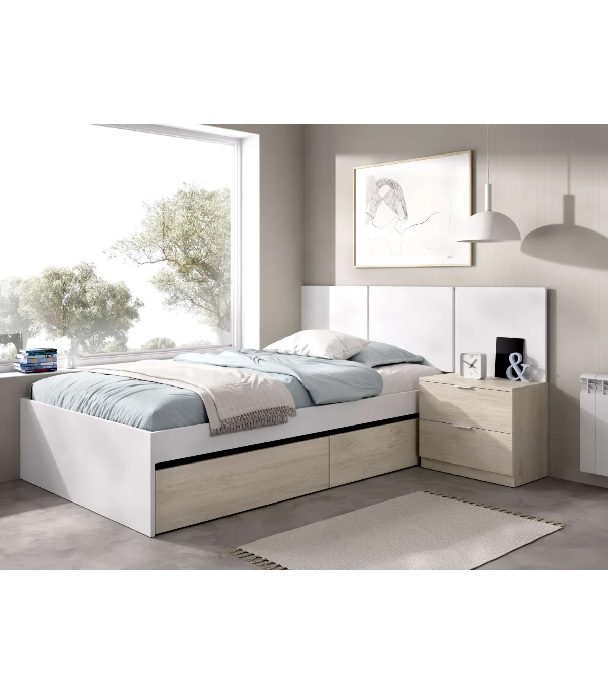 This set consists of headboard and bedside table of three drawers with handles to match the set. A very robust and easy to assemble furniture with step-by-step explanatory guide.