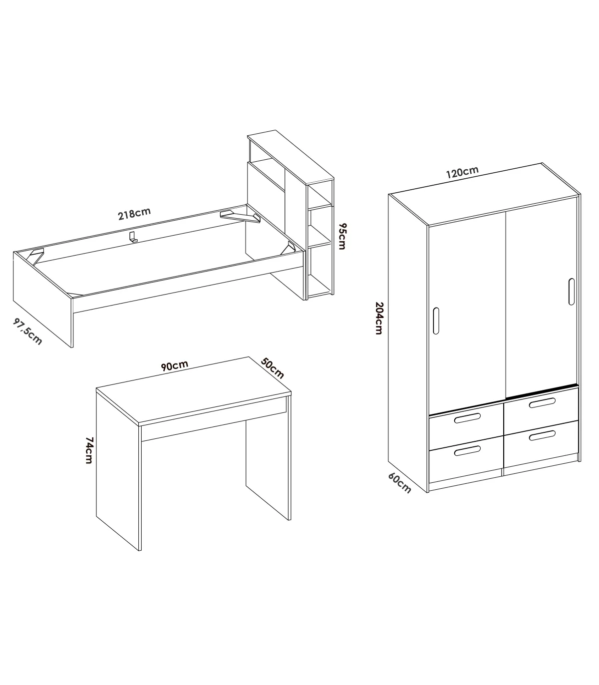 This set consists of headboard and bedside table of three drawers with handles to match the set. A very robust and easy to assemble furniture with step-by-step explanatory guide.