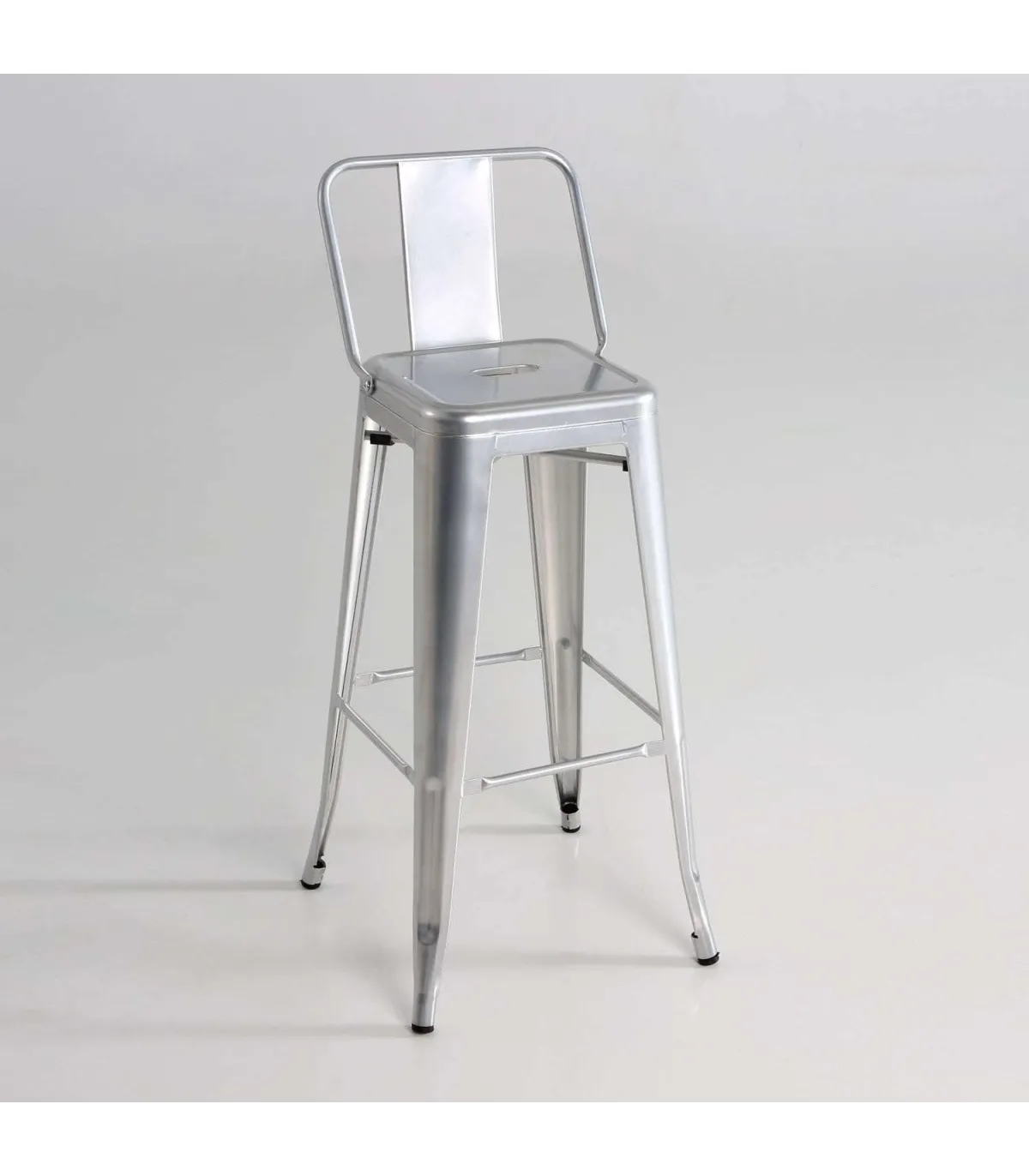 Taburete de metal con respaldo acabado plata, 100 cm(alto)43 cm(ancho)43 cm(largo)
