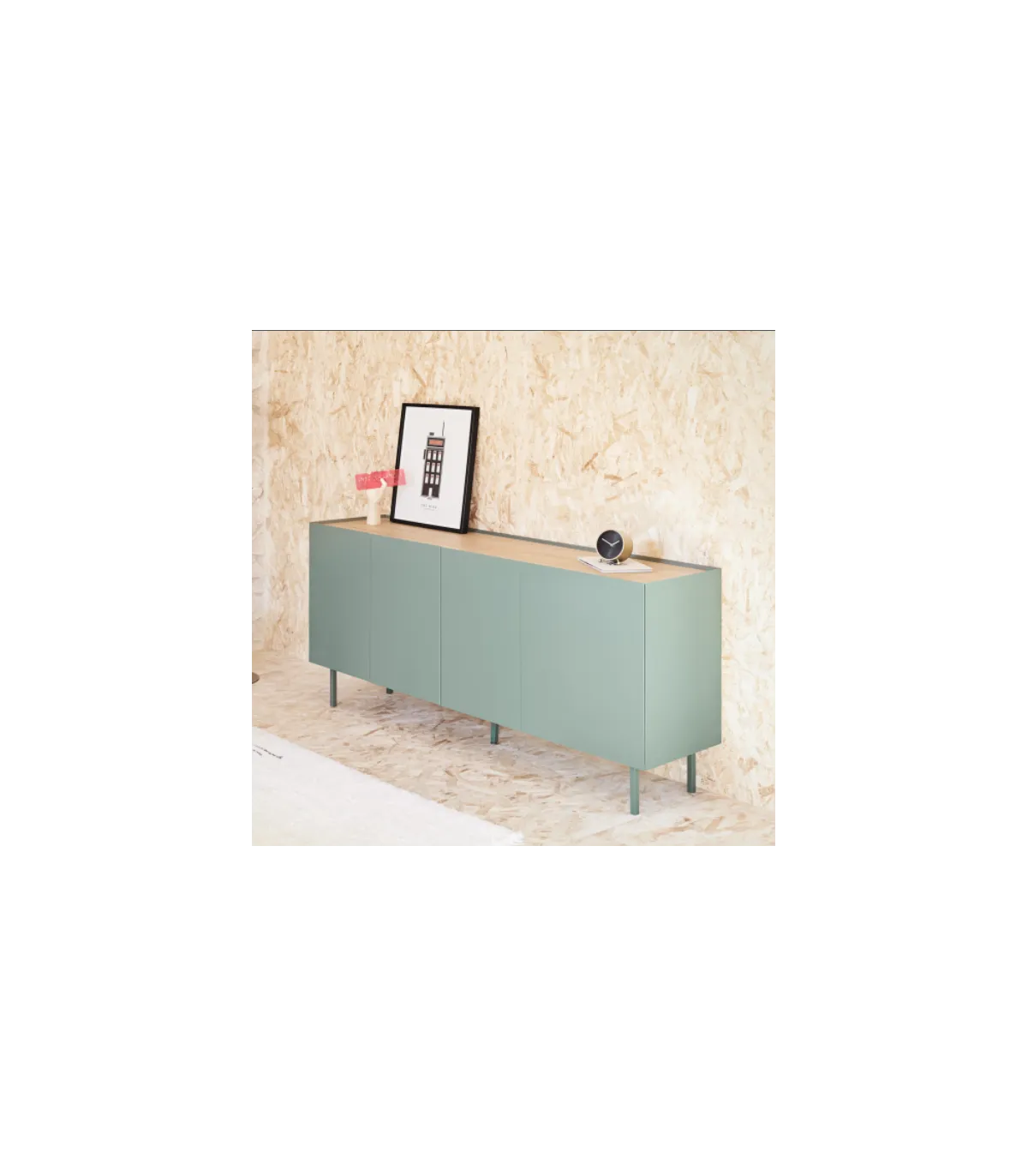 Organiza tu comedor con estilo gracias al mueble aparador Arista · 4 puertas · acabado verde · dimensiones perfectas.