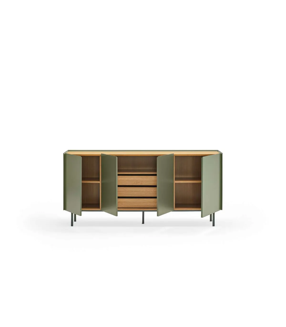 Mueble aparador para comedor modelo Arista 4 puertas acabado verde, 40cm(ancho) 78cm(alto) 165cm (largo)