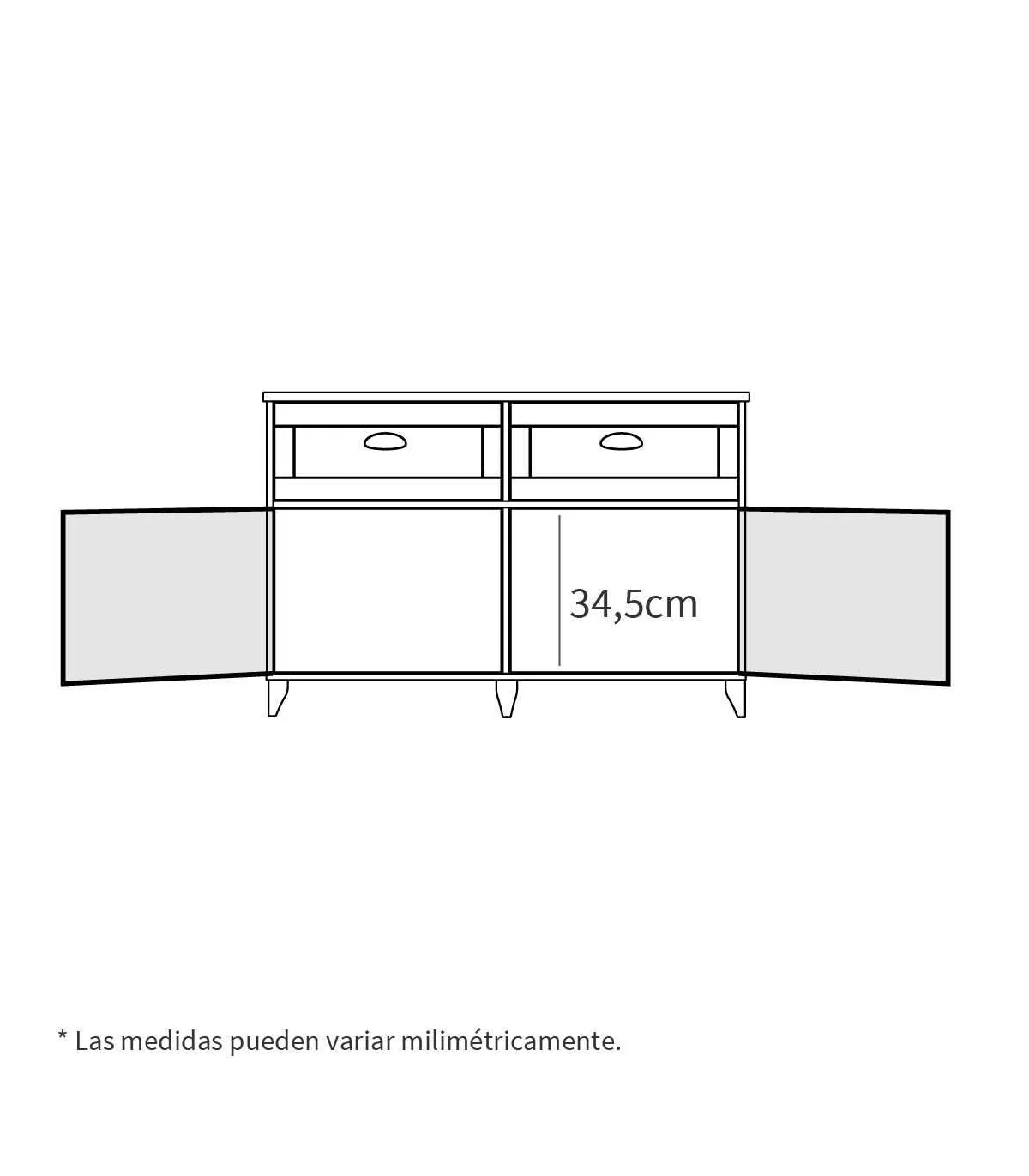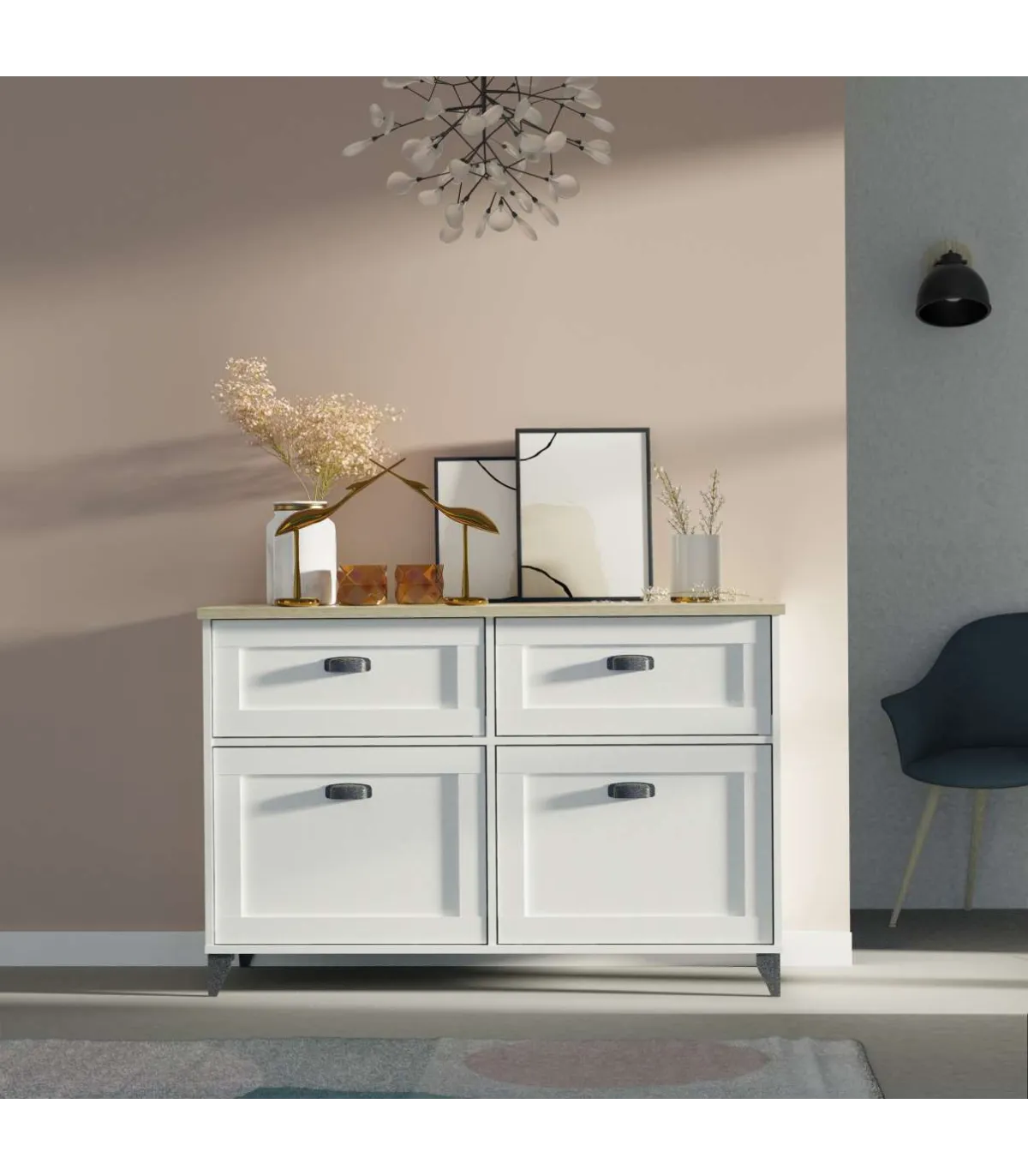 Aparador 2 puertas 2 cajones Portobello en acabado color blanco, 80cm(alto) 120cm(ancho) 47cm(largo)