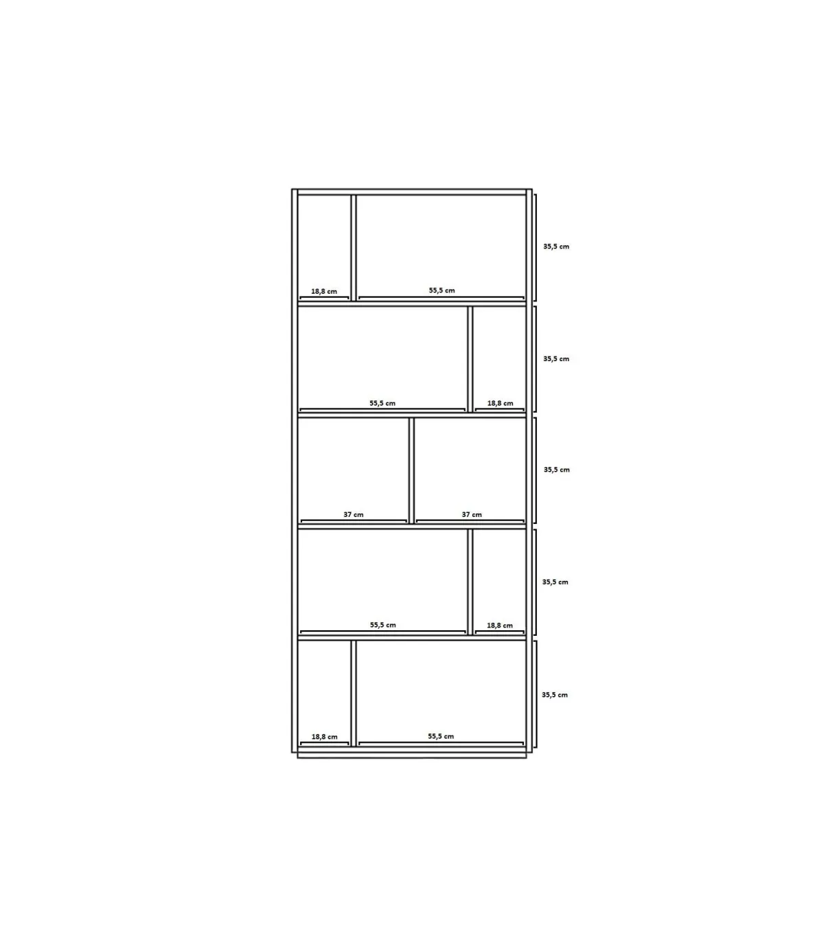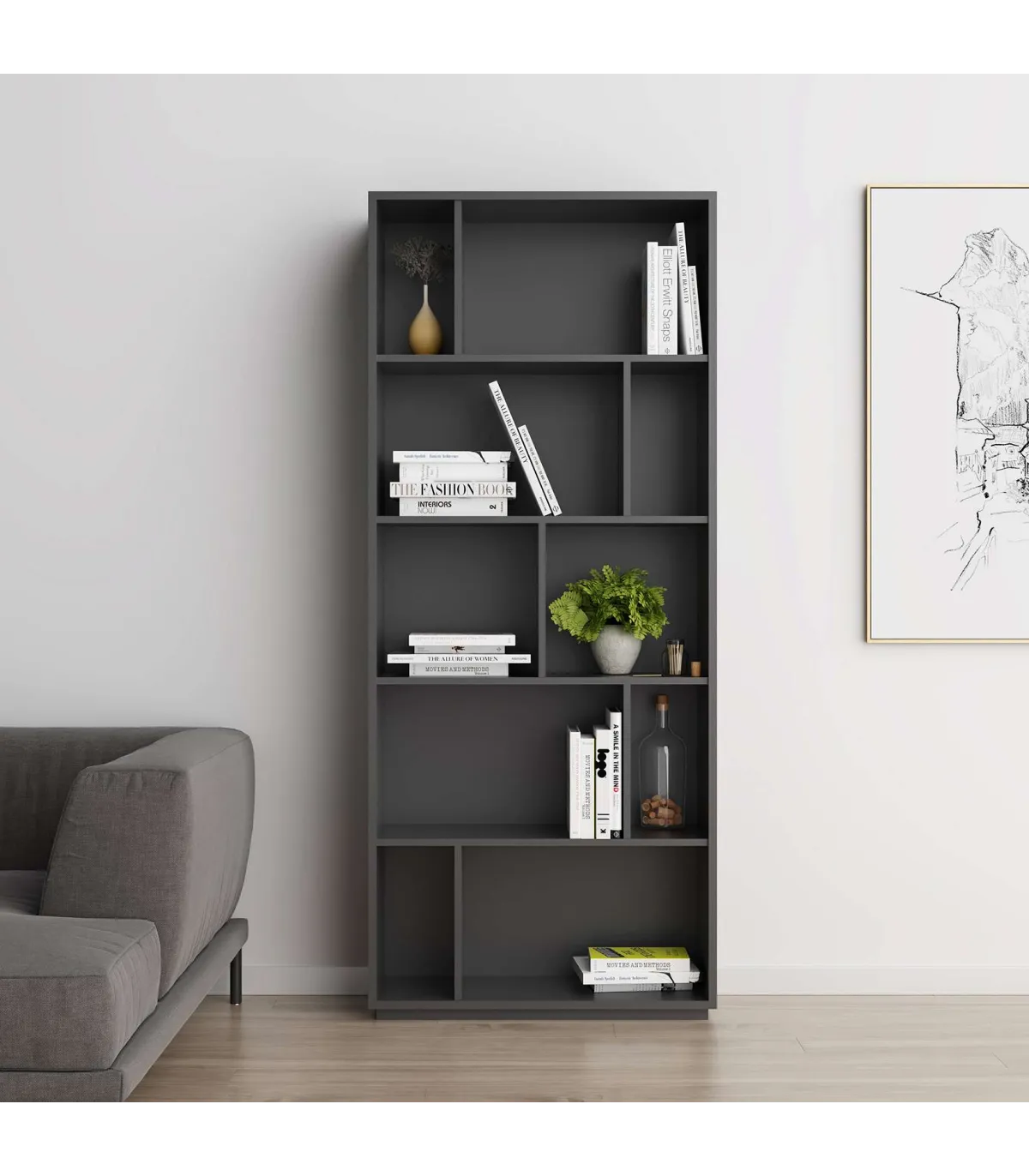 La estantería librería fabricada en melamina de calidad con acabado en color grafito, es un mueble versátil y funcional que ofrece 10 compartimentos de distintos tamaños, distribuidos en 5 alturas. Esta estantería es ideal para organizar y exhibir libros, decoraciones u otros objetos en tu hogar u oficina. La melamina de alta calidad garantiza su durabilidad y resistencia, mientras que el diseño de múltiples compartimentos proporciona opciones de almacenamiento personalizadas. Con esta estantería, podrás mantener tus pertenencias ordenadas y accesibles de manera elegante.