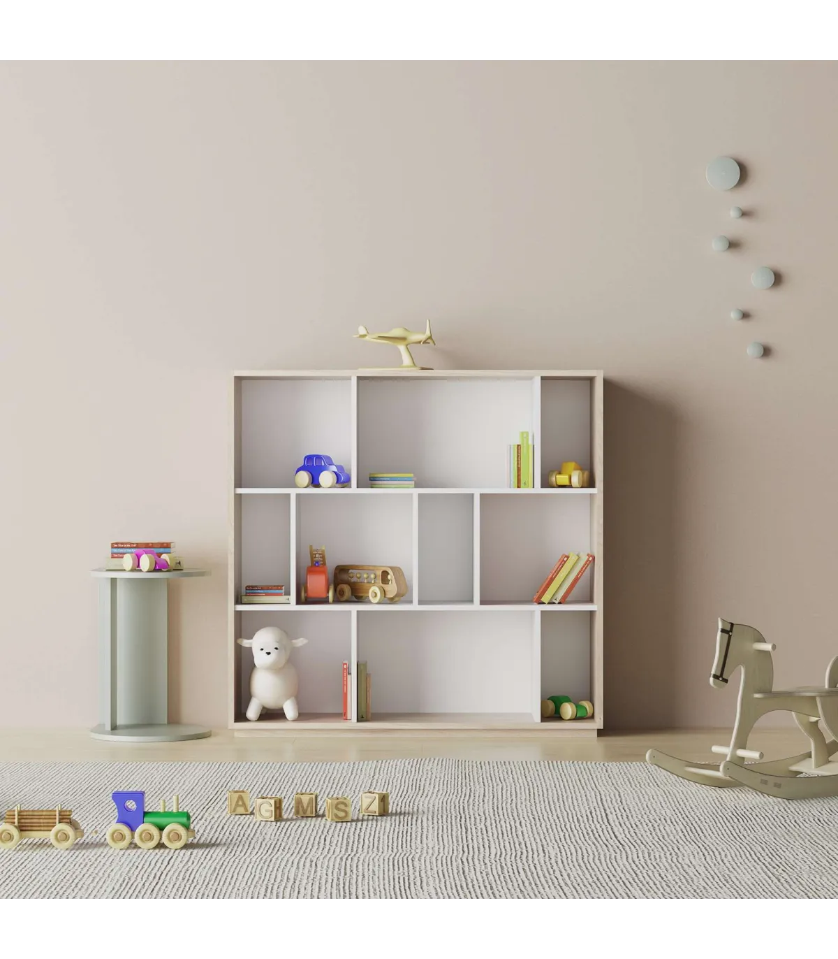 La estantería librería fabricada en melamina de calidad con acabado en color roble combinado con blanco, es un mueble versátil y funcional que ofrece 10 compartimentos de distintos tamaños, distribuidos en 3 alturas. Esta estantería es ideal para organizar y exhibir libros, decoraciones u otros objetos en tu hogar u oficina. La melamina de alta calidad garantiza su durabilidad y resistencia, mientras que el diseño de múltiples compartimentos proporciona opciones de almacenamiento personalizadas. Con esta estantería, podrás mantener tus pertenencias ordenadas y accesibles de manera elegante.