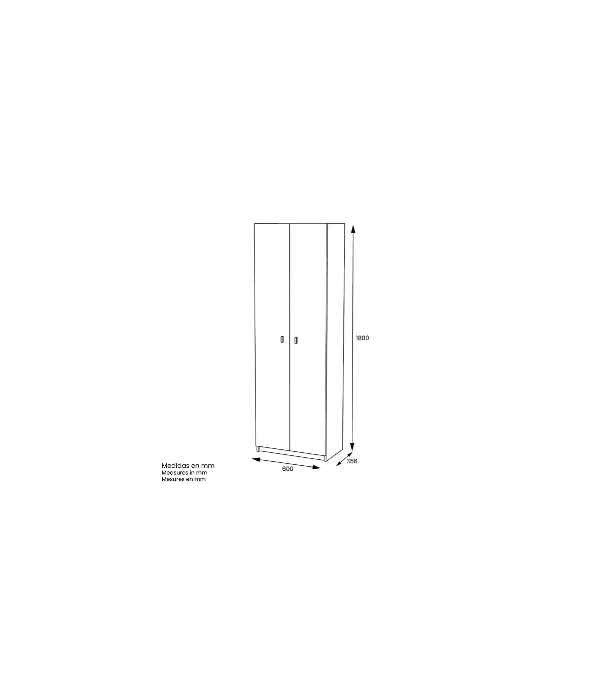 - Medidas mueble: 1800 x 600 x 356 mm. (alto x ancho x fondo)