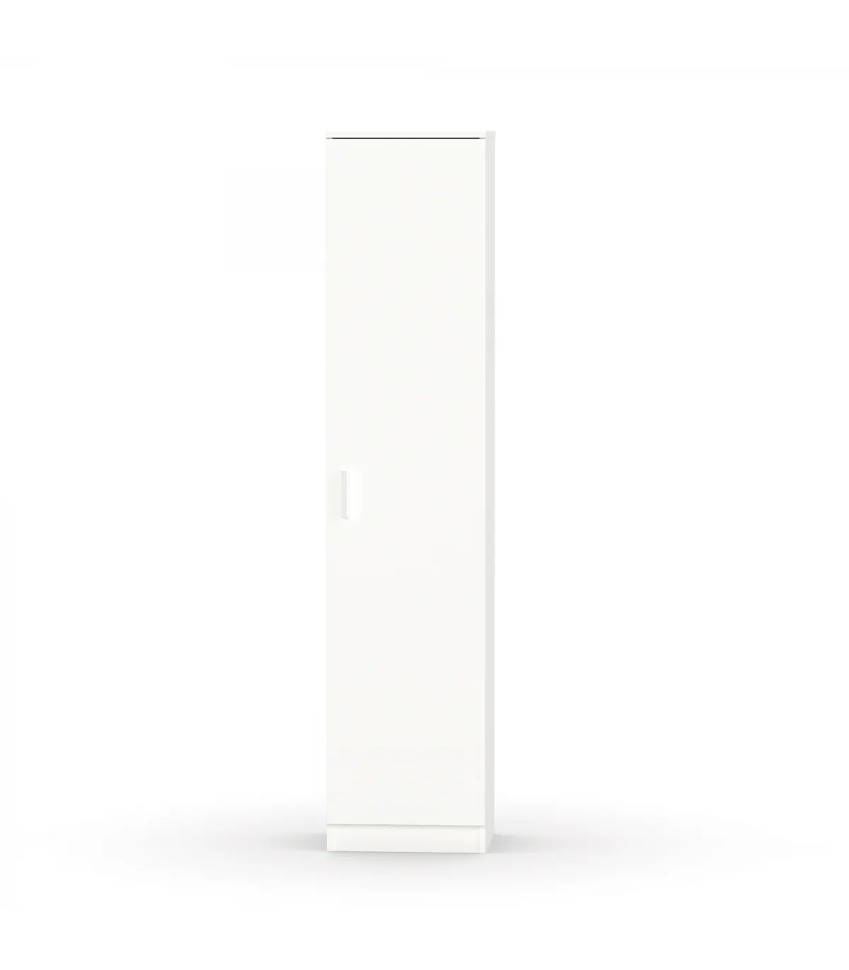 Este Armario Auxiliar es ideal para cualquier uso que le des ya que vale para todo lo que necesites. Esta fabricado en melamina de alta calidad en color blanco mate, con una puerta y tirador alargado cromado. Es perfecto tanto para una habitación y guardar ropa como para tenerlo en otro lugar de la casa y guardar todo tipo de artículos.