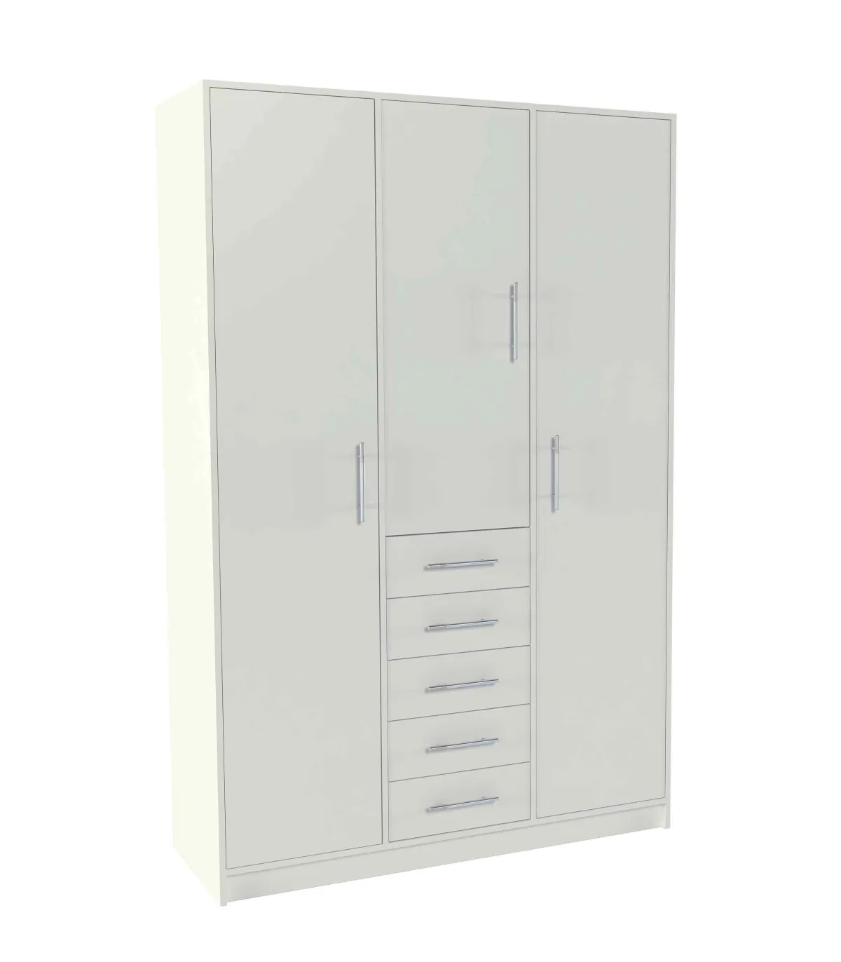 Armario 3 puertas abatibles 5 cajones acabado blanco, 200 cm(alto)130 cm(ancho)50 cm(fondo)