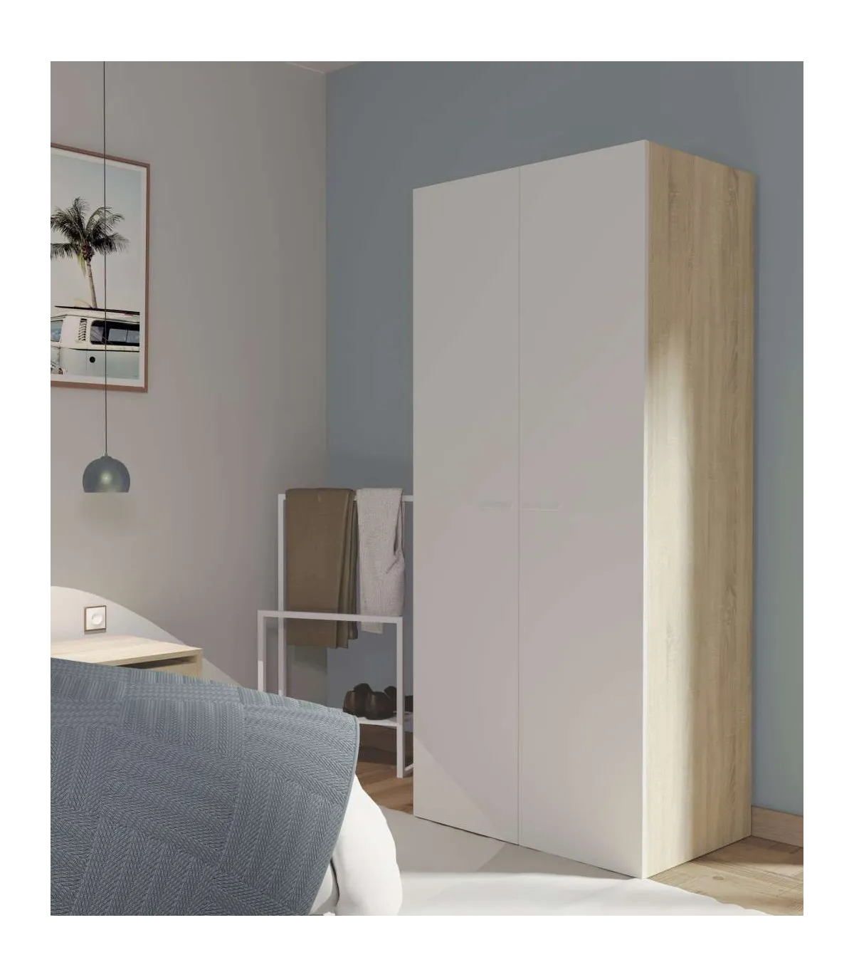 Armario ropero 2 puertas abatibles Tibet acabado roble cambrian/blanco, 79 cm(ancho) 180 cm(altura) 52 cm(fondo)
