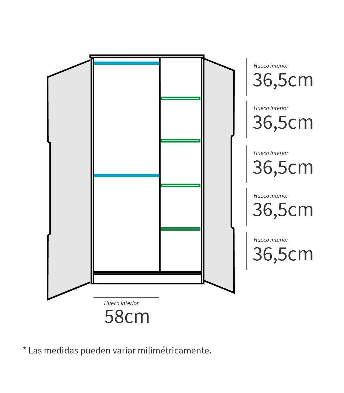 Armario ropero 2 puertas abatibles Noa acabado roble gold, 100cm(ancho) 200cm(altura) 57cm(fondo)