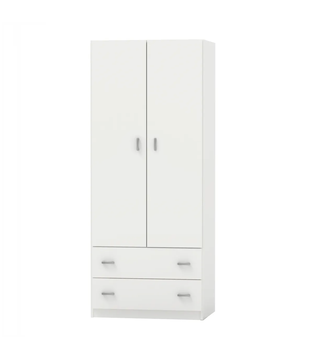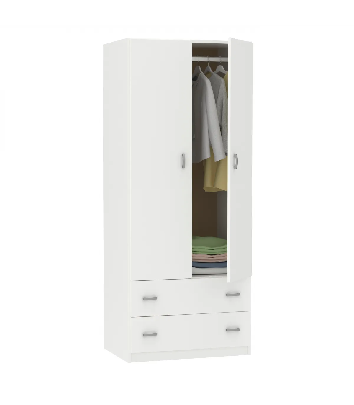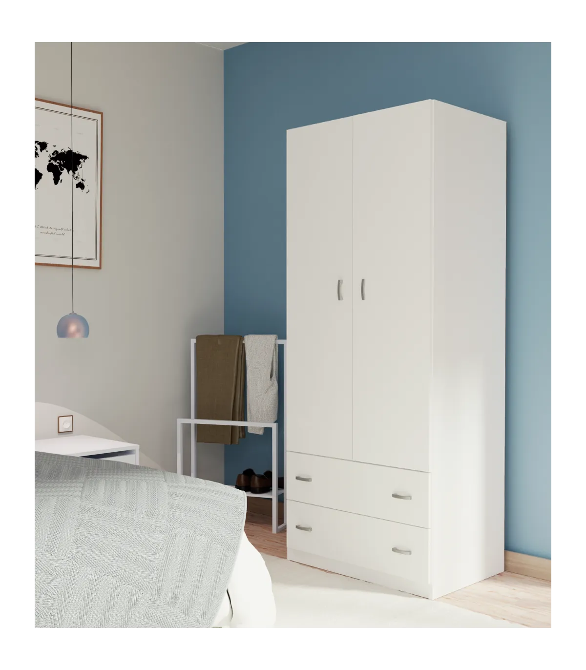Armario ropero 2 puertas abatibles y 2 cajones Turin acabado blanco, 180 cm(alto)74 cm(ancho)50 cm(fondo)