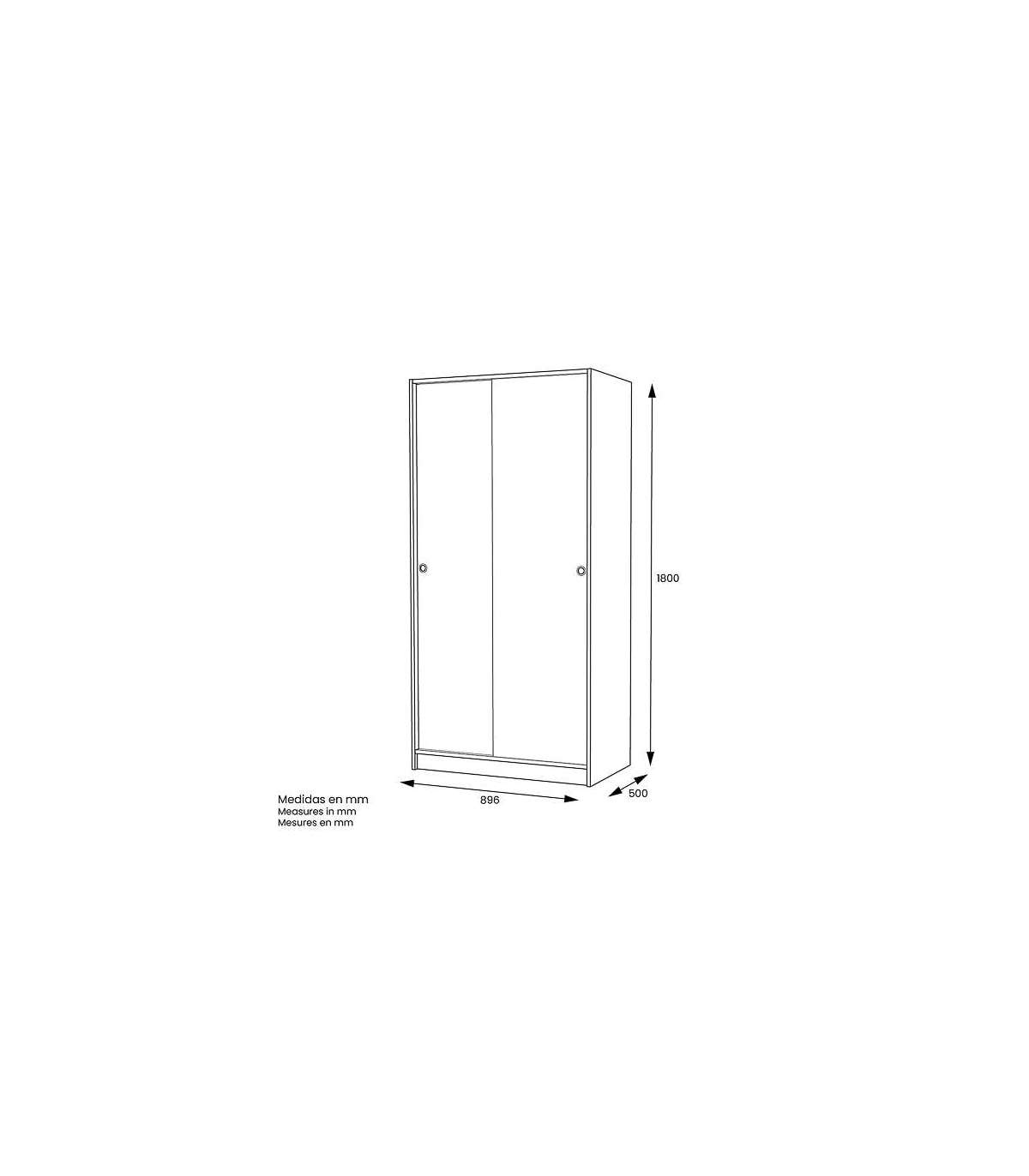 Armario 2 puertas correderas color acabado blanco 180 cm(alto)89,6 cm(ancho)50 cm(fondo)