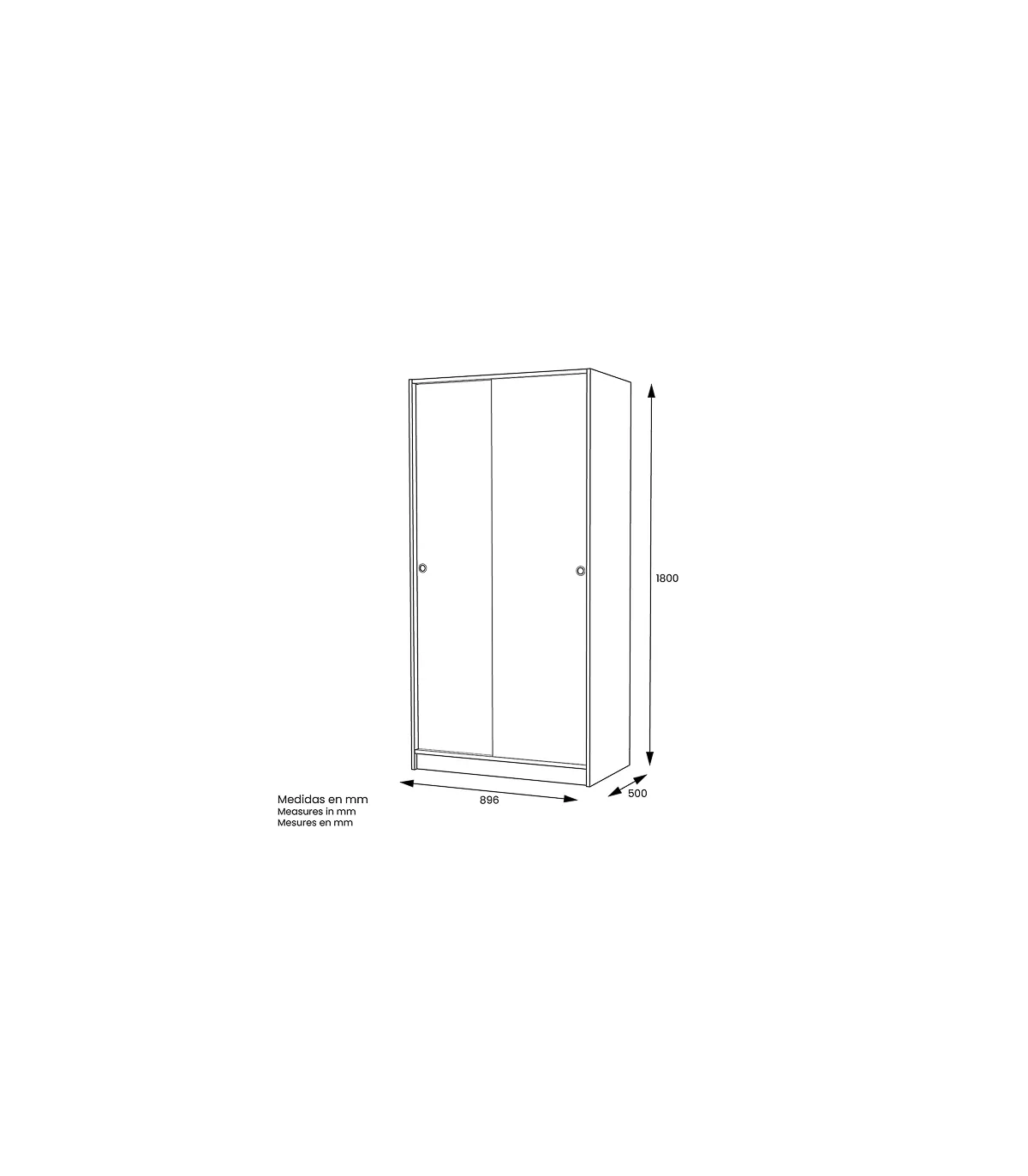 Medidas: 180 x 89.6 x 50 cm (alto x ancho x fondo)