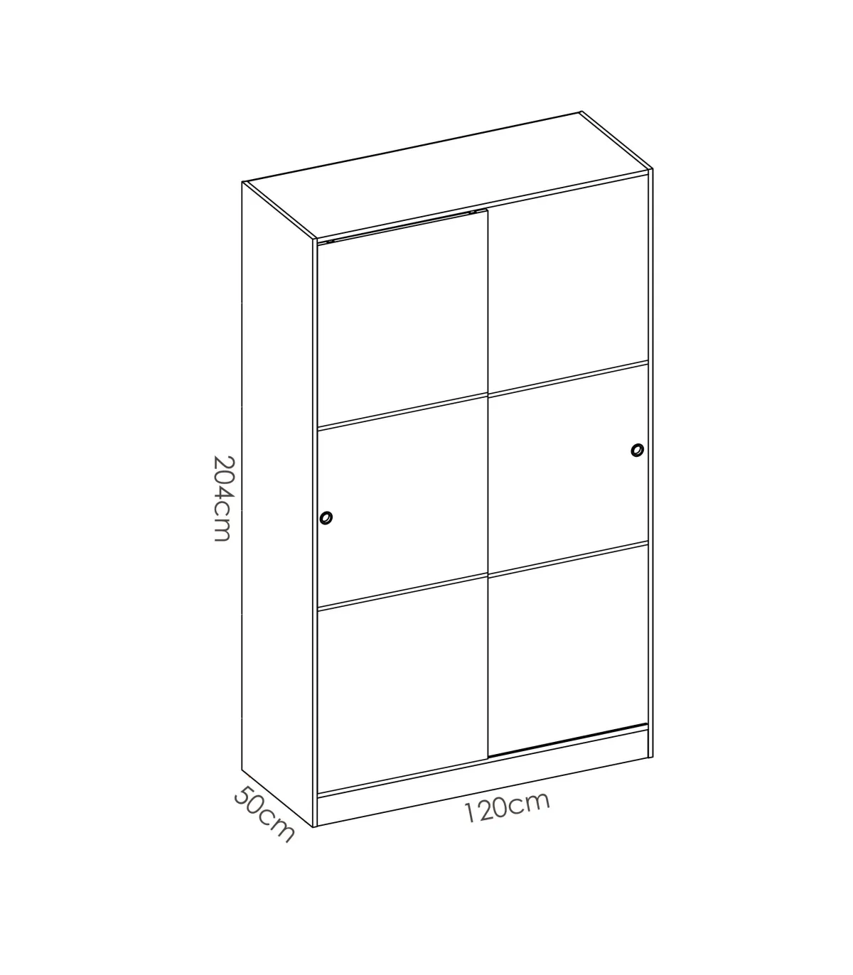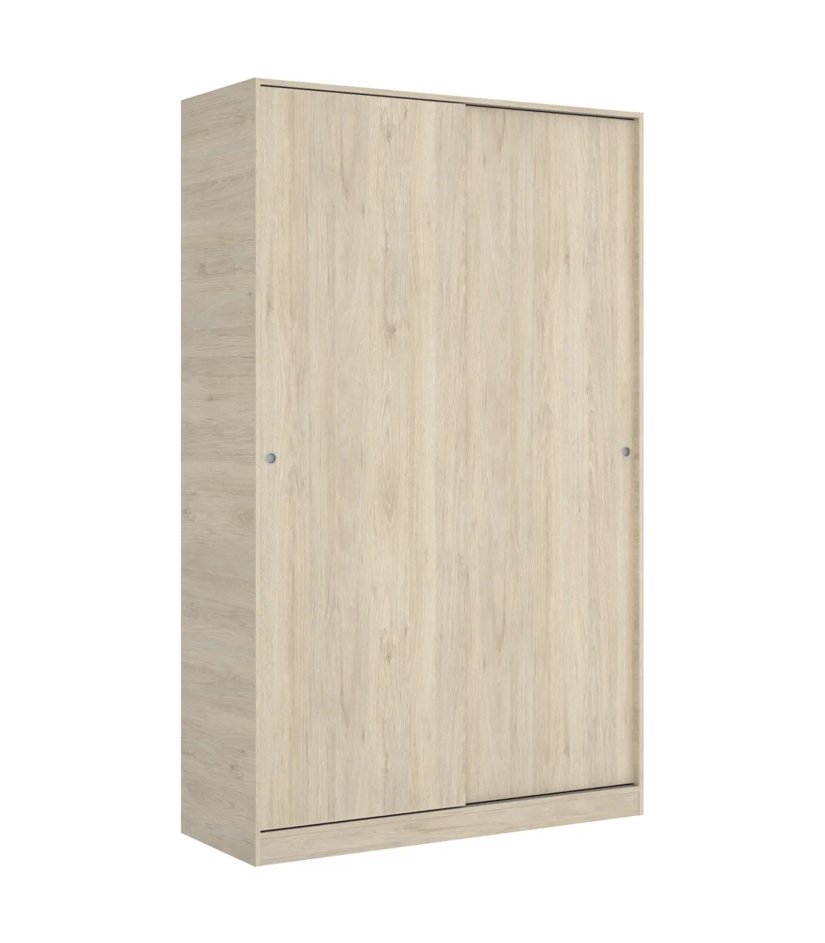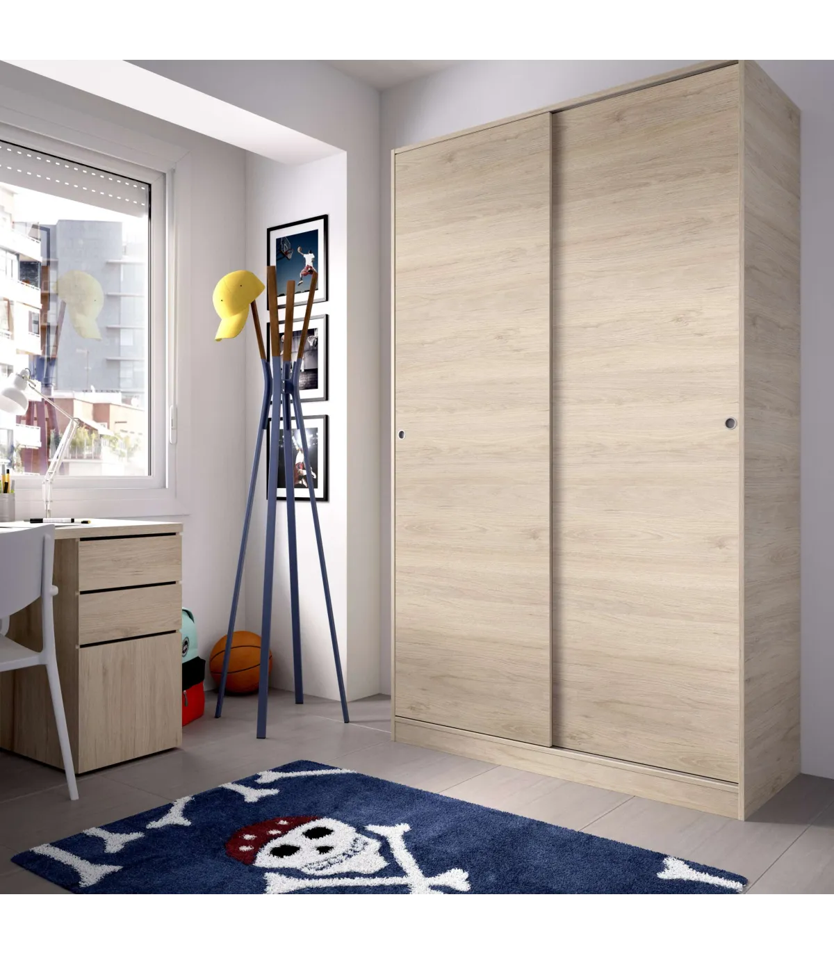 Armario Alto con dos puertas correderas en color roble natural, es la solución perfecta para dormitorios pequeños. Con un diseño elegante y funcional, ofrece un amplio espacio de almacenamiento mientras combina armoniosamente tonos neutros que iluminan y amplían el espacio.