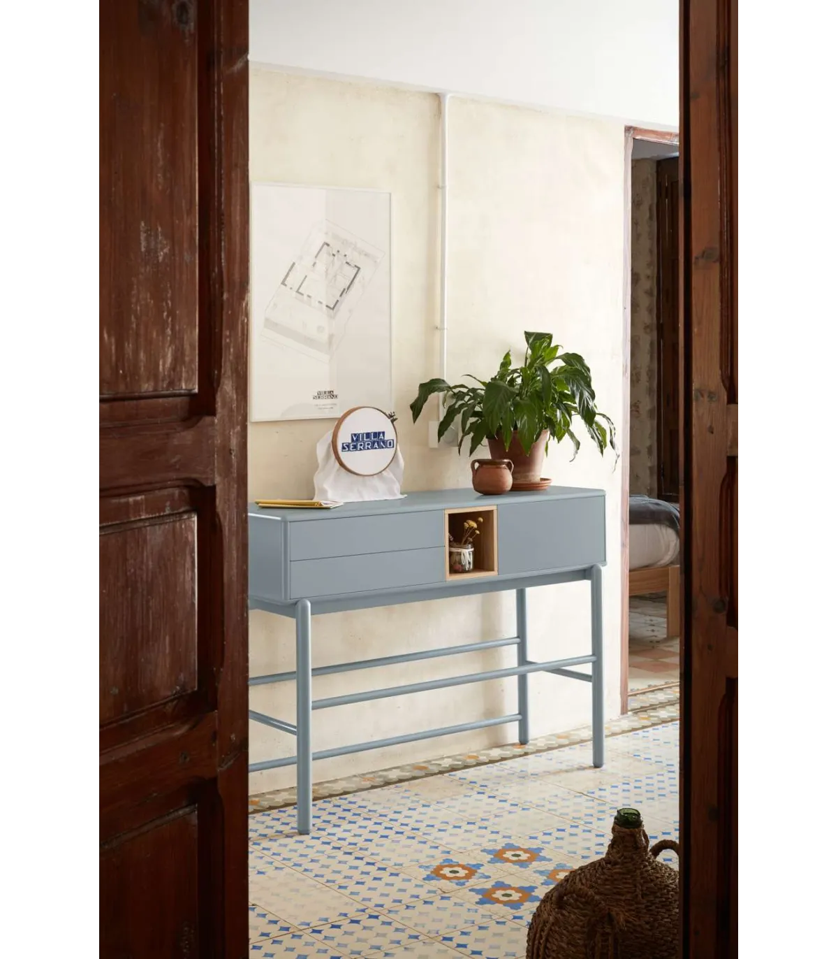 Organiza tu entrada con estilo gracias al mueble recibidor Corvo · 1 puerta · 2 cajones · acabado gris pela.